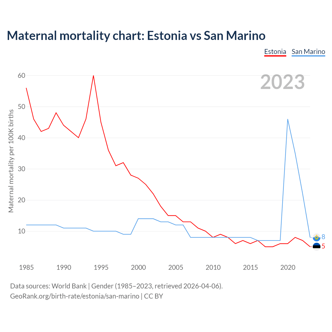 Maternal mortality chart: Estonia vs San Marino