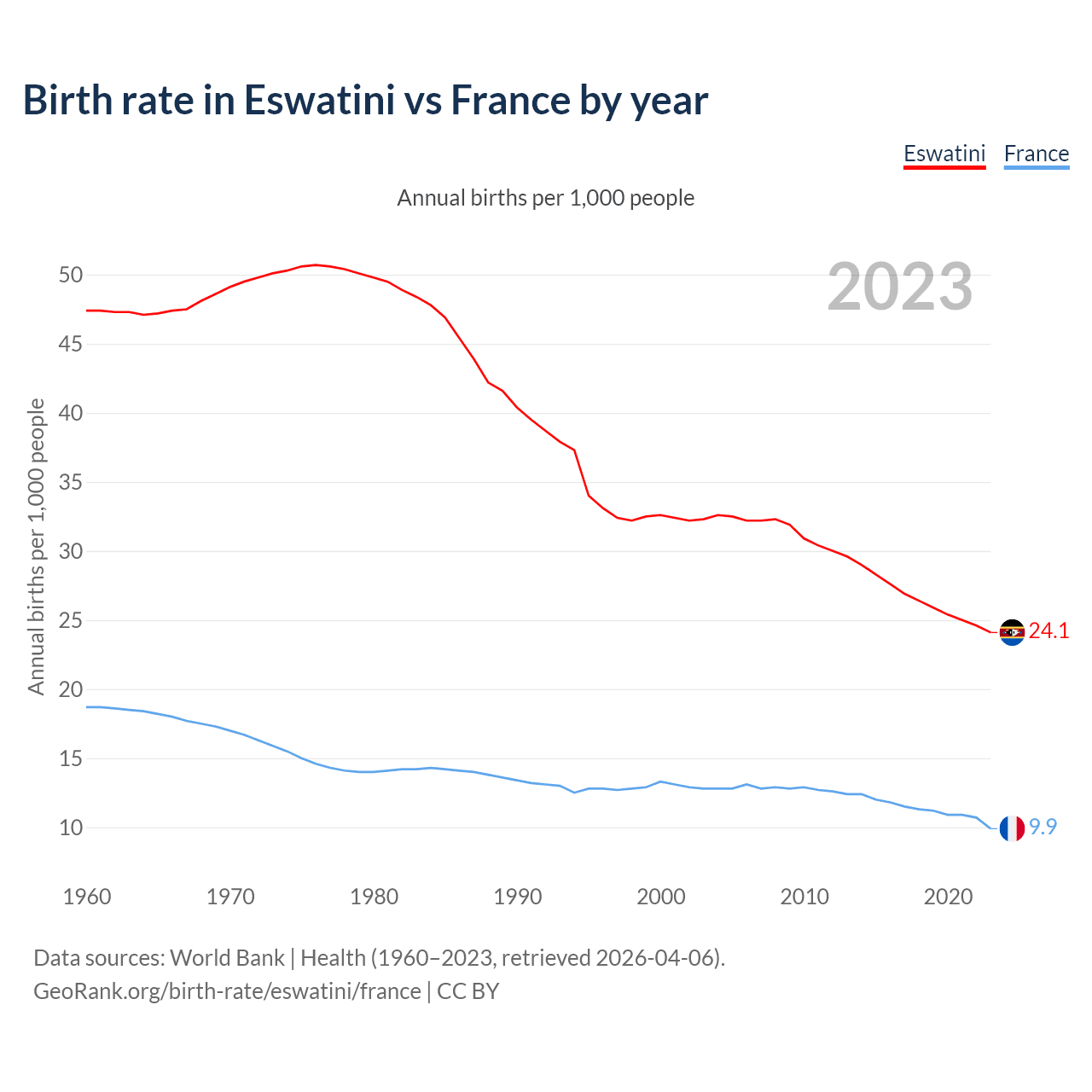 GeoRank.org/birth-rate/eswatini/france | CC BY