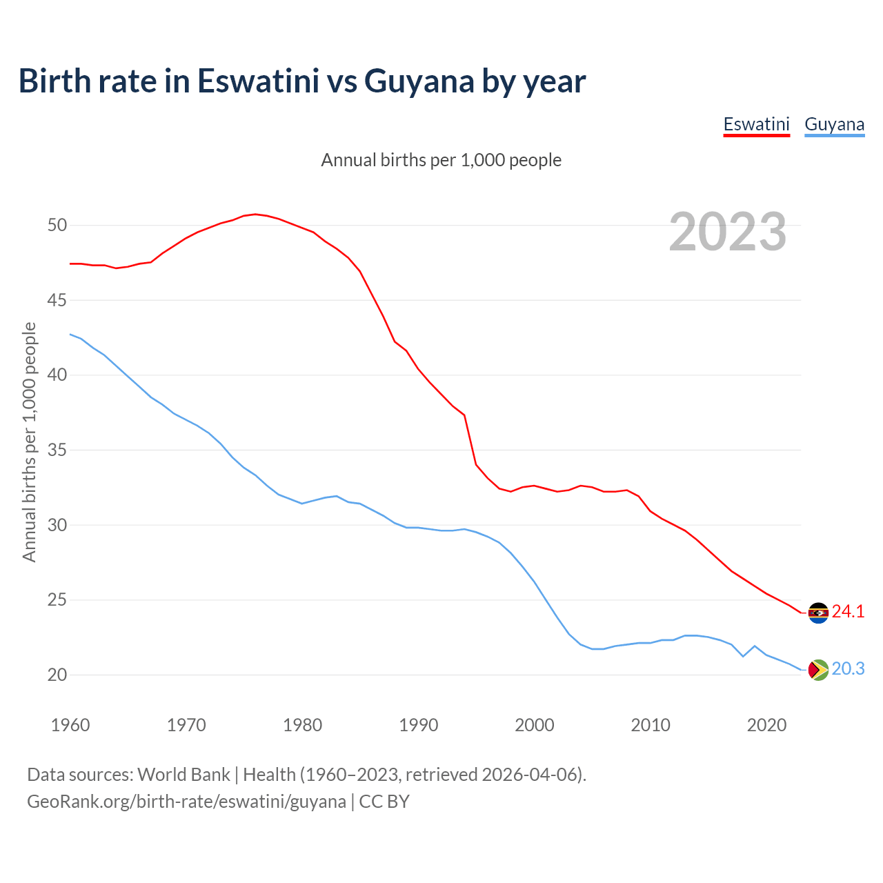 GeoRank.org/birth-rate/eswatini/guyana | CC BY