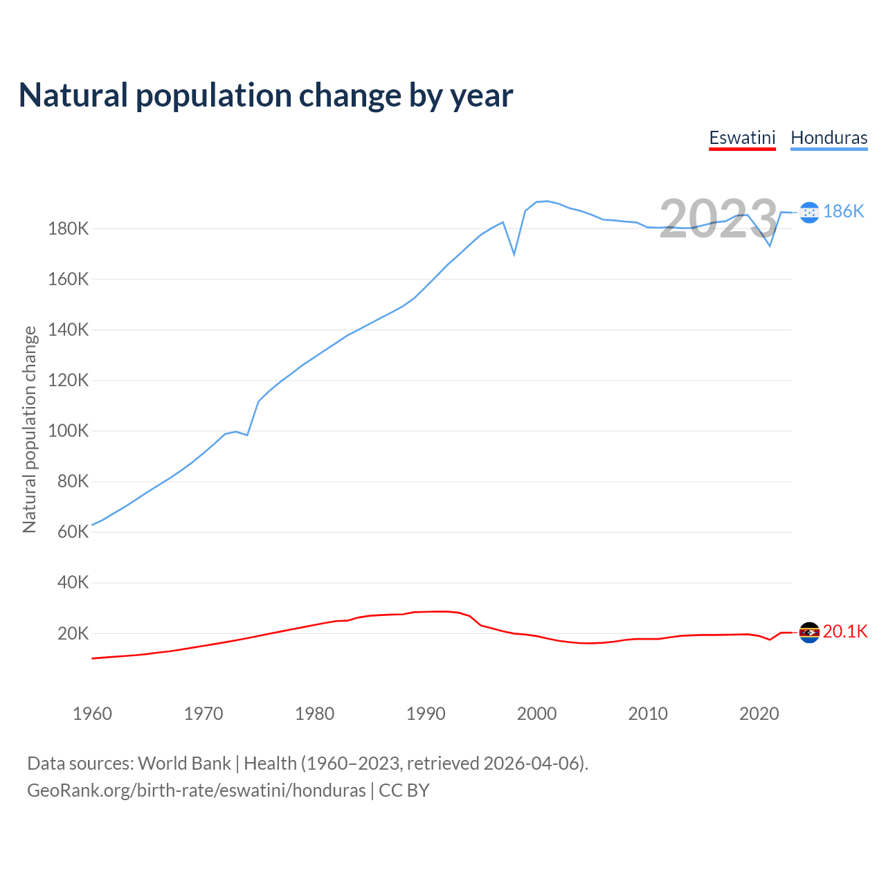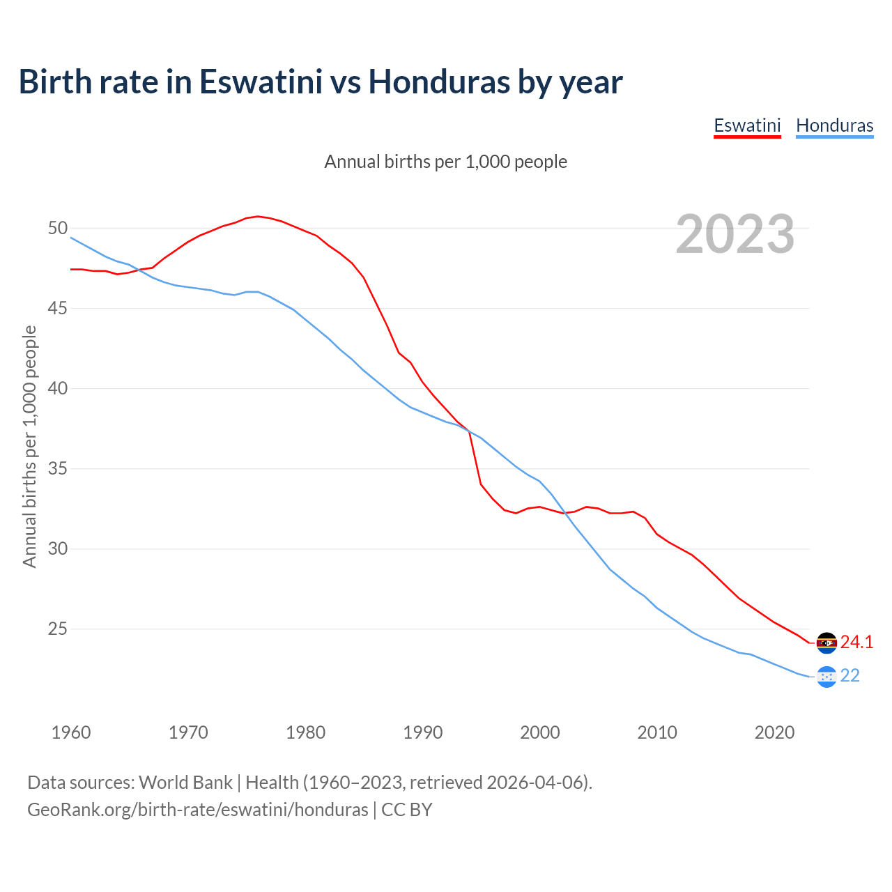 GeoRank.org/birth-rate/eswatini/honduras | CC BY