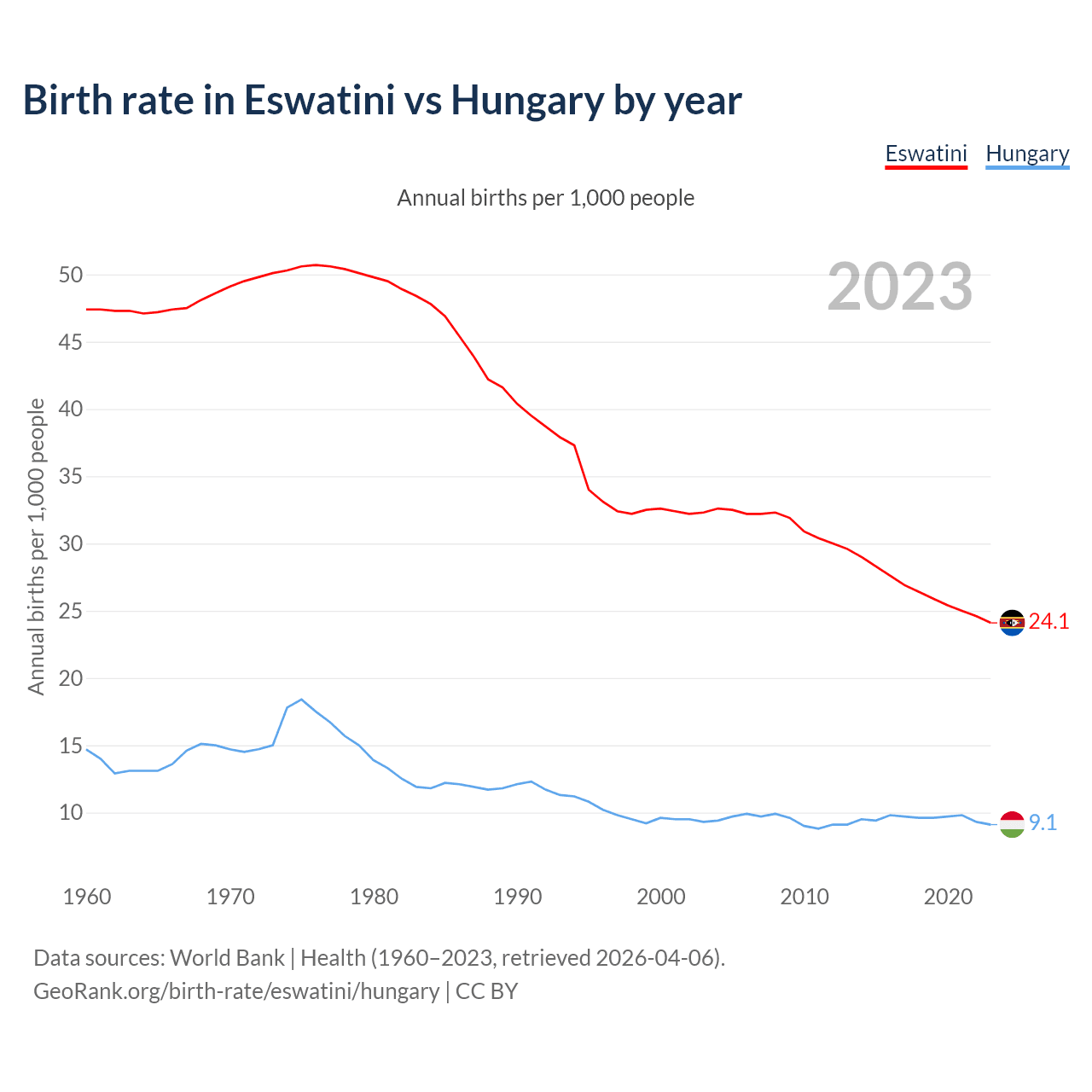 GeoRank.org/birth-rate/eswatini/hungary | CC BY