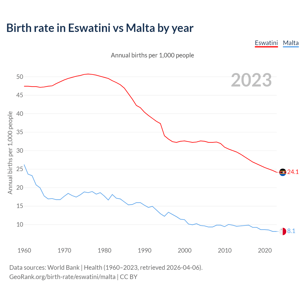 GeoRank.org/birth-rate/eswatini/malta | CC BY