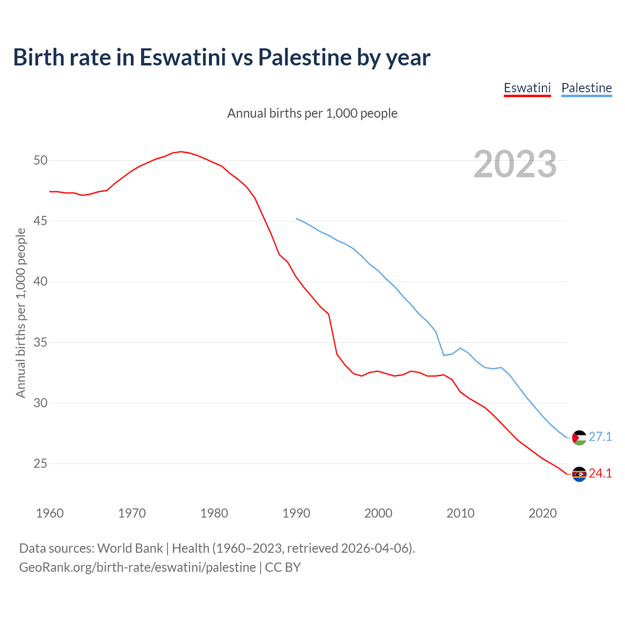 GeoRank.org/birth-rate/eswatini/palestine | CC BY