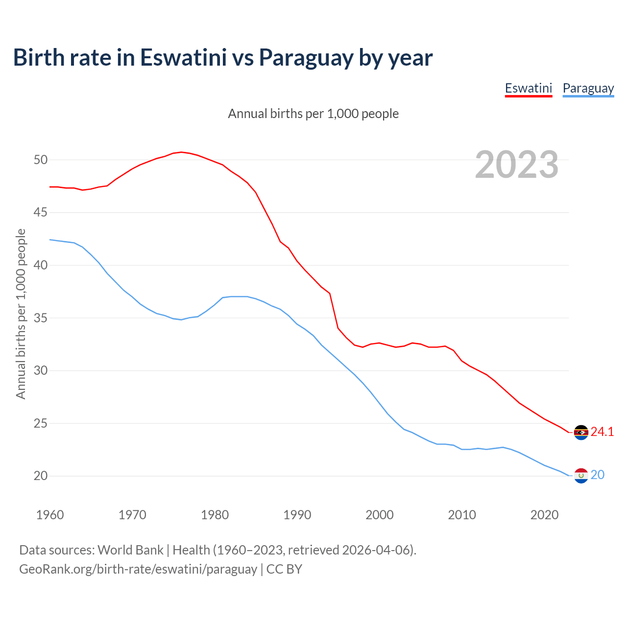 GeoRank.org/birth-rate/eswatini/paraguay | CC BY