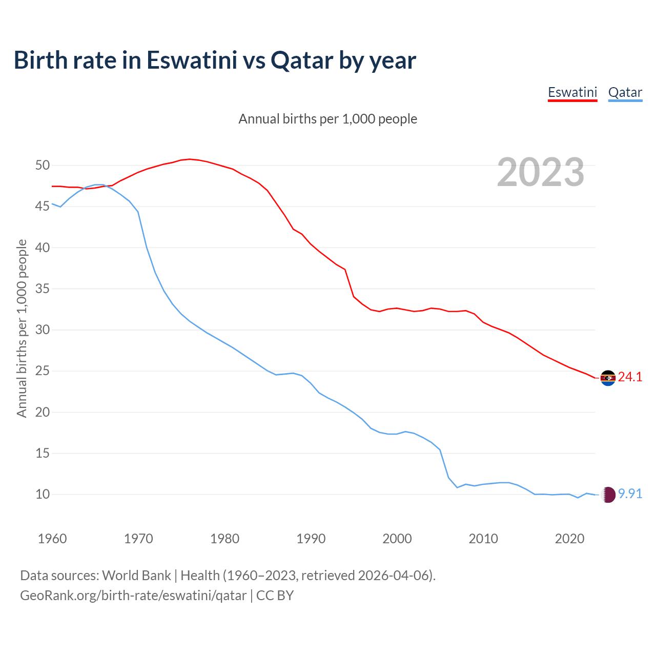 GeoRank.org/birth-rate/eswatini/qatar | CC BY