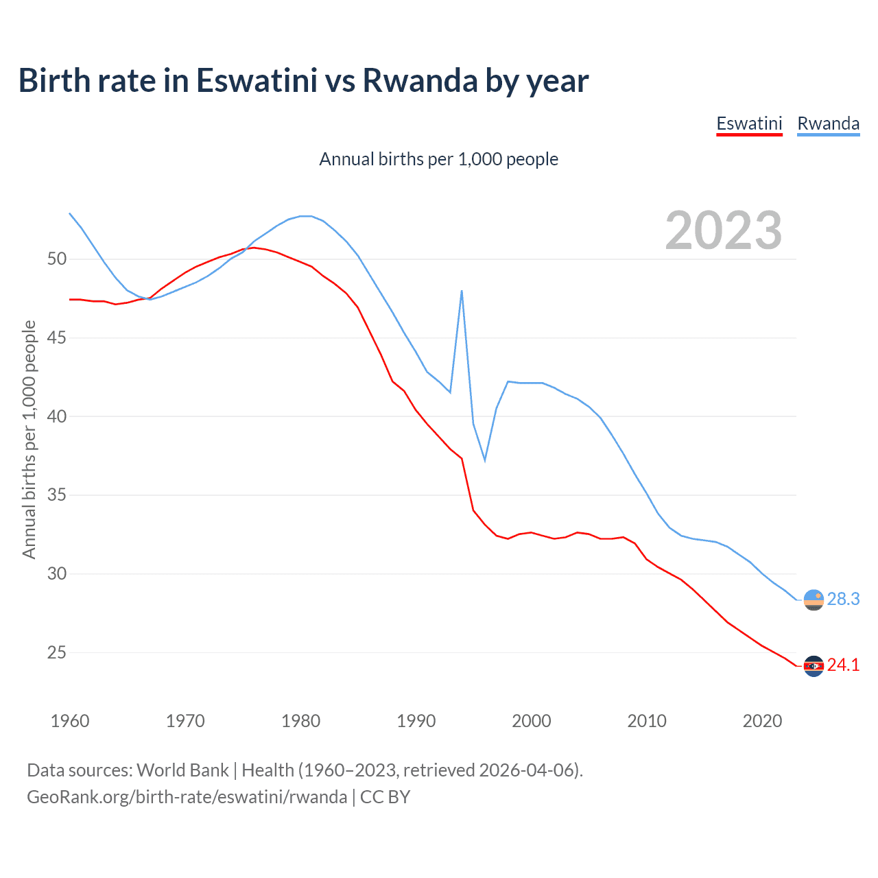 GeoRank.org/birth-rate/eswatini/rwanda | CC BY