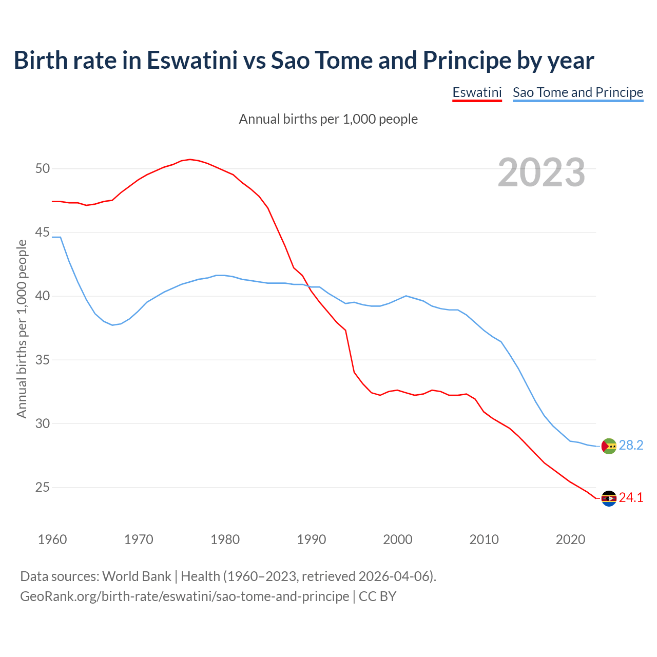 GeoRank.org/birth-rate/eswatini/sao-tome-and-principe | CC BY