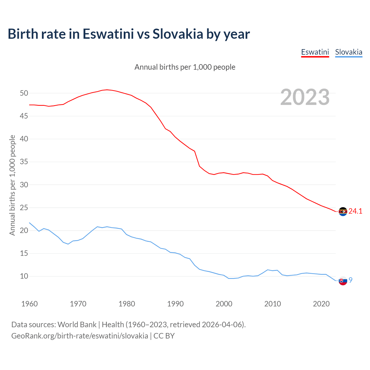 GeoRank.org/birth-rate/eswatini/slovakia | CC BY