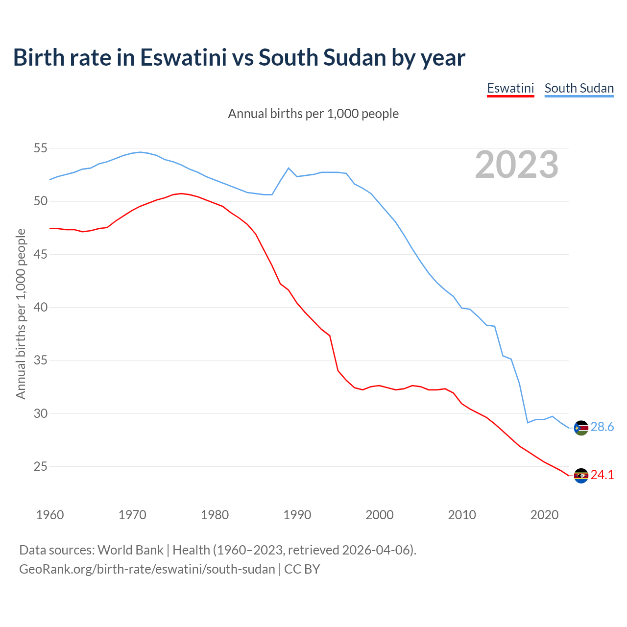GeoRank.org/birth-rate/eswatini/south-sudan | CC BY