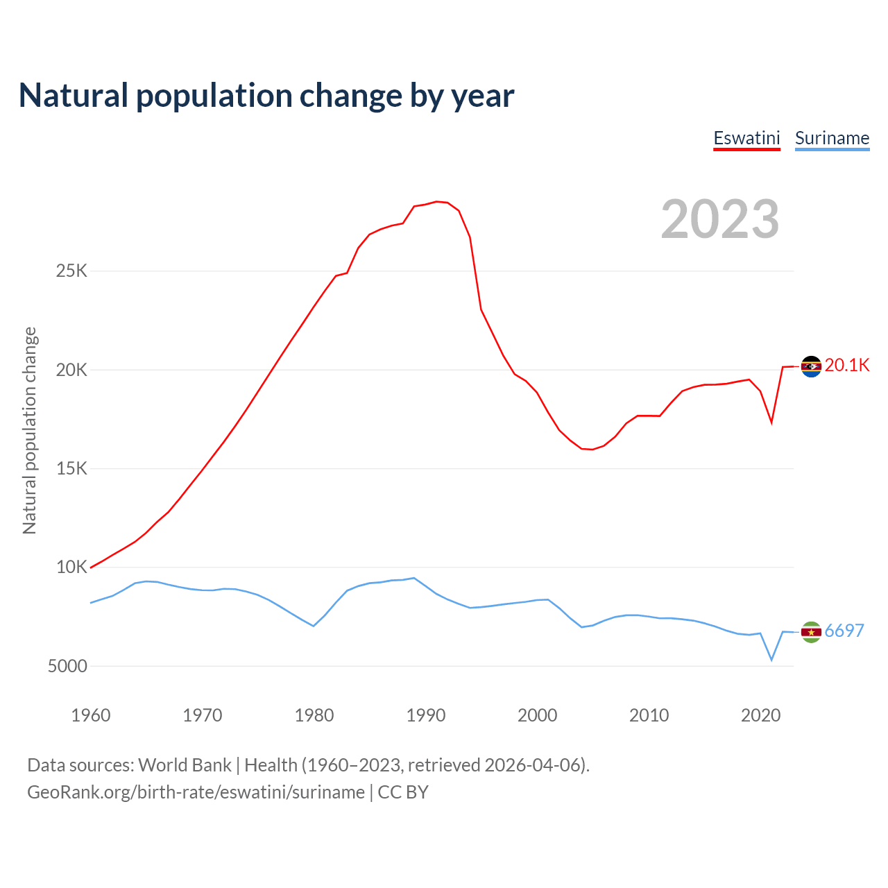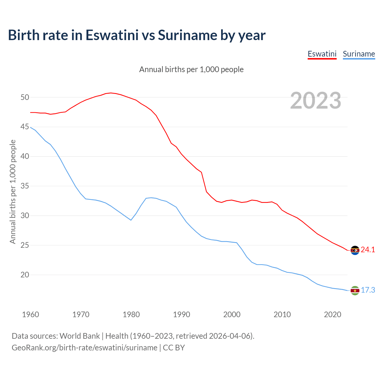 GeoRank.org/birth-rate/eswatini/suriname | CC BY