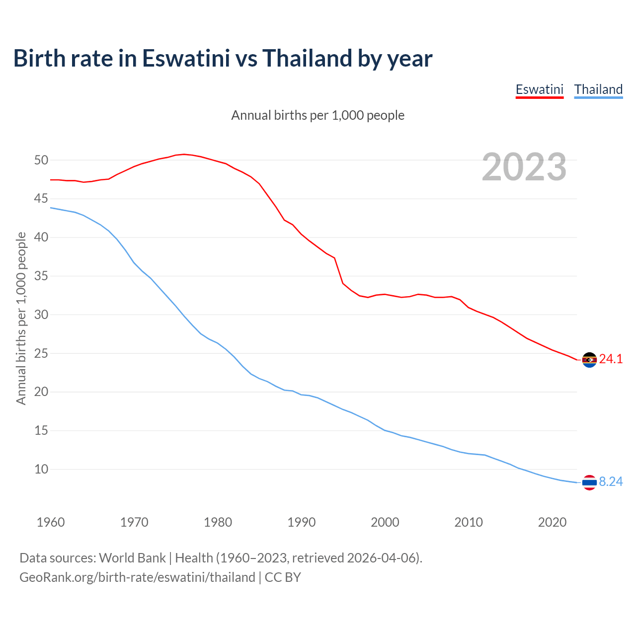GeoRank.org/birth-rate/eswatini/thailand | CC BY