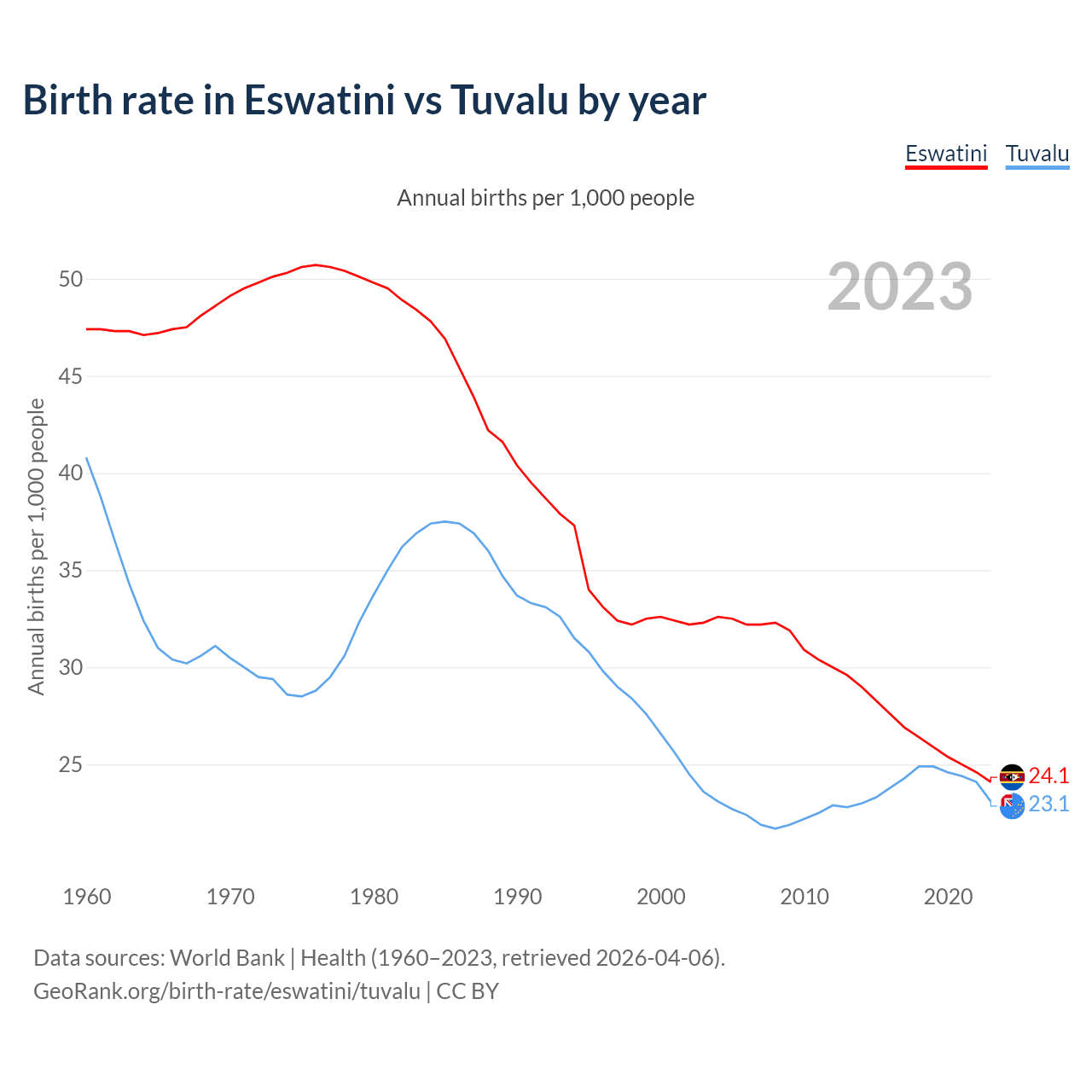 GeoRank.org/birth-rate/eswatini/tuvalu | CC BY