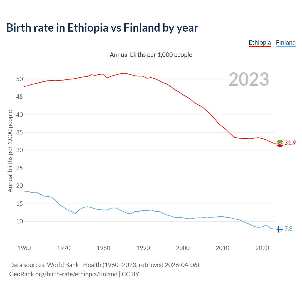 GeoRank.org/birth-rate/ethiopia/finland | CC BY