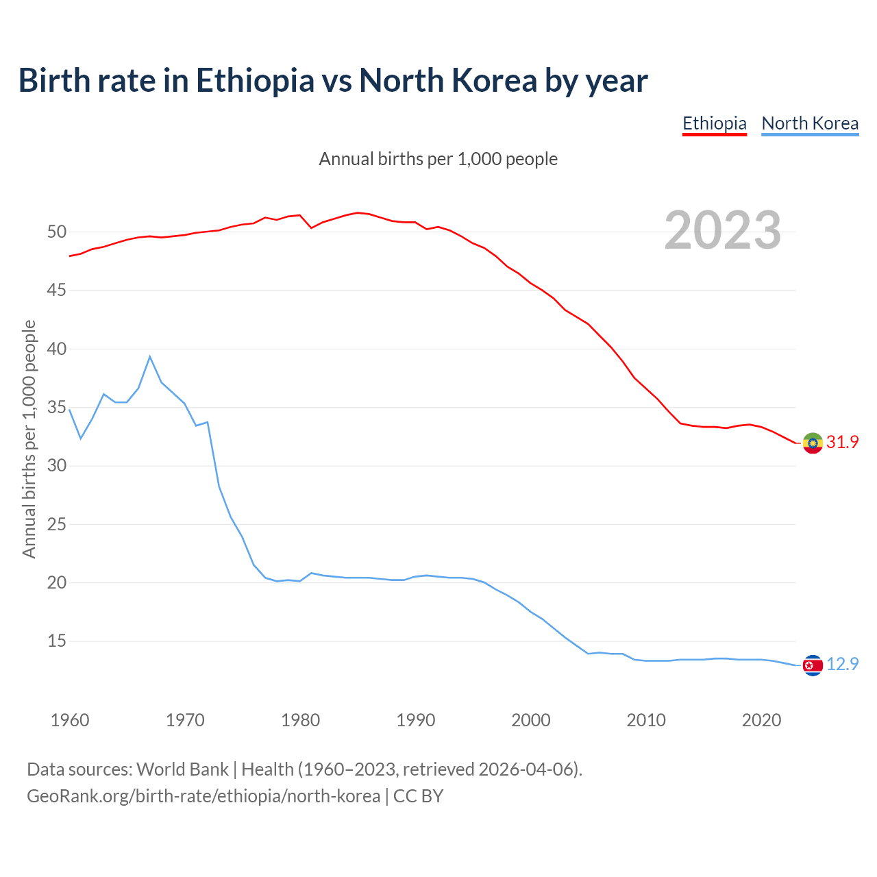 GeoRank.org/birth-rate/ethiopia/north-korea | CC BY