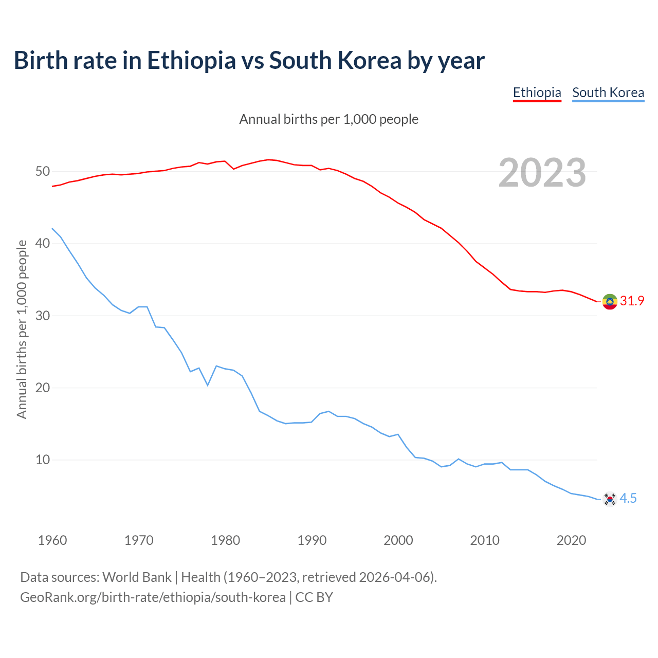 GeoRank.org/birth-rate/ethiopia/south-korea | CC BY