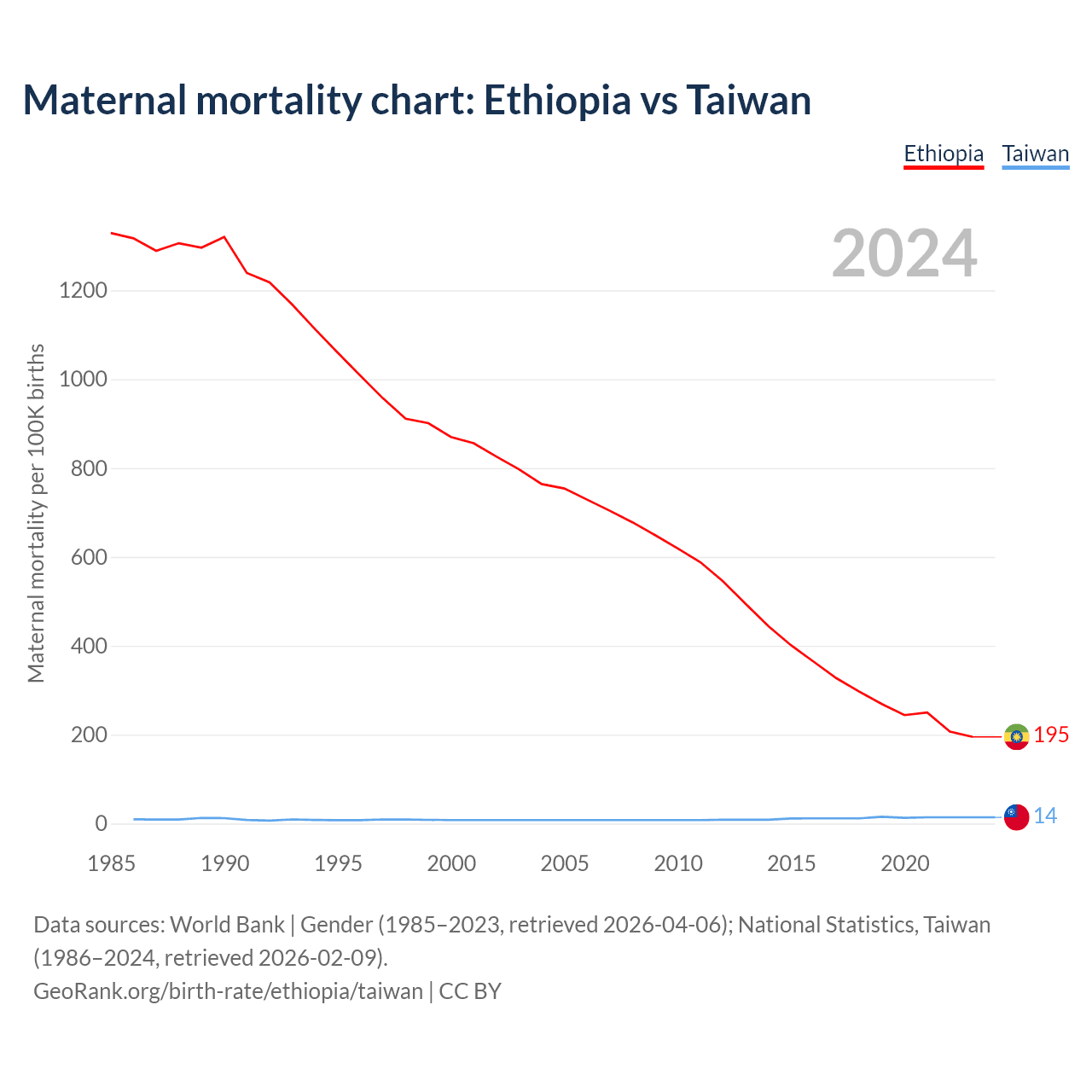 Maternal mortality chart: Ethiopia vs Taiwan