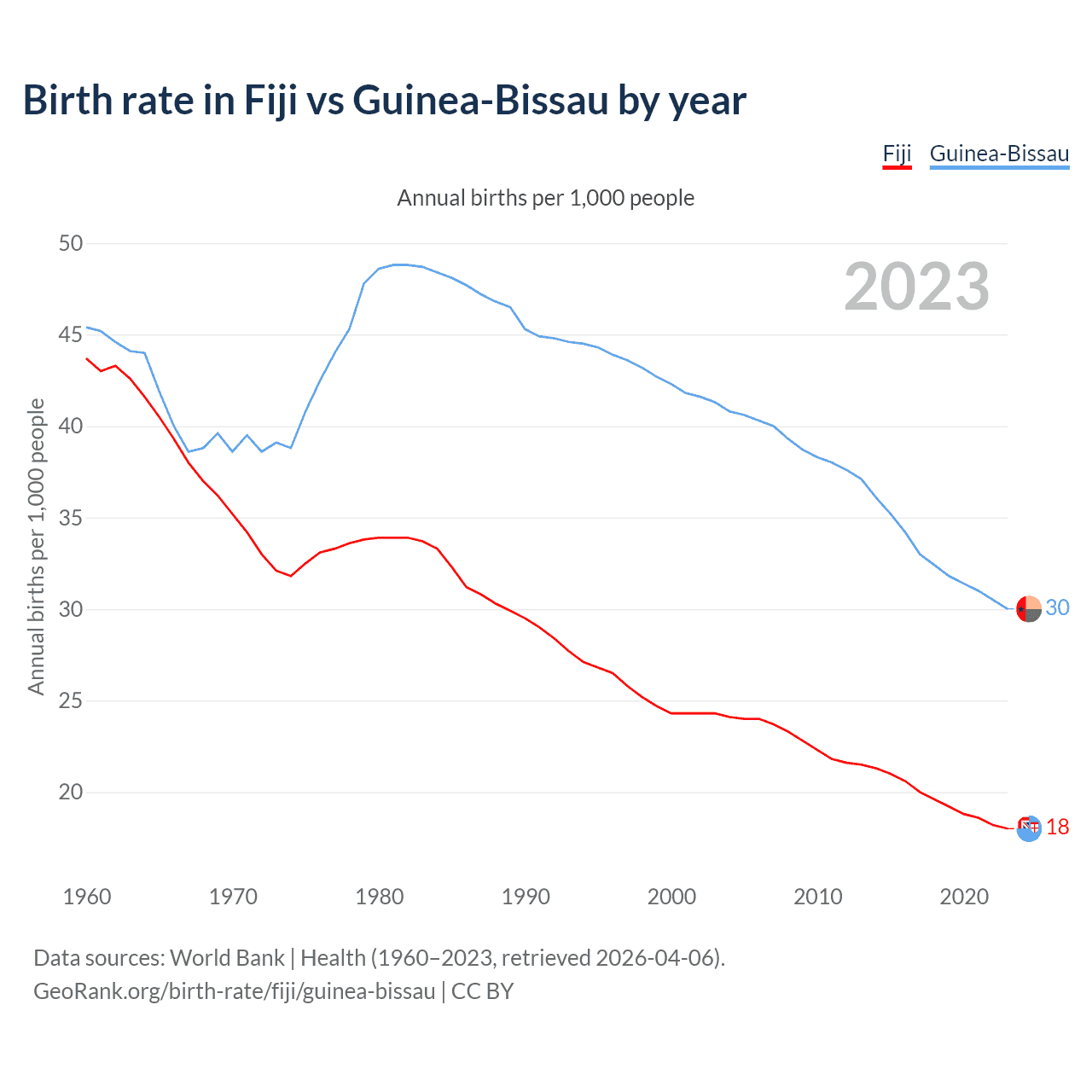GeoRank.org/birth-rate/fiji/guinea-bissau | CC BY