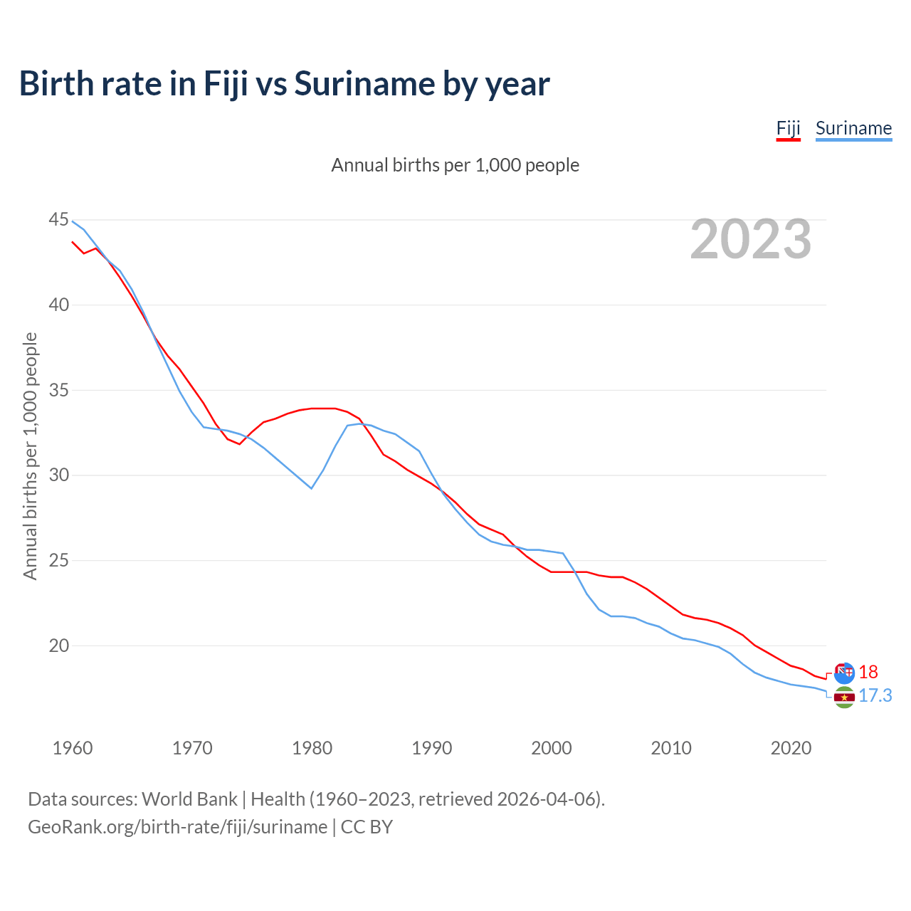 GeoRank.org/birth-rate/fiji/suriname | CC BY