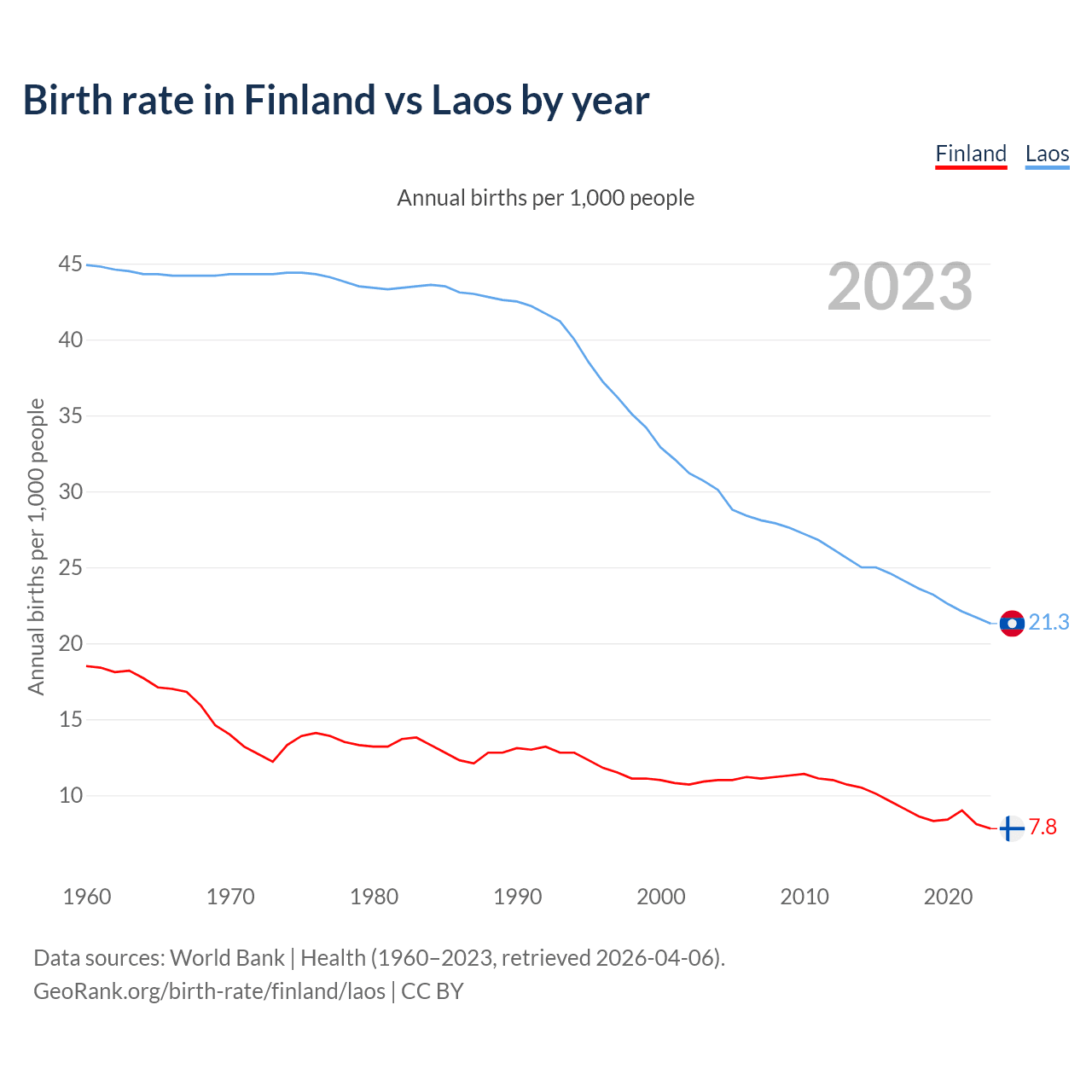 GeoRank.org/birth-rate/finland/laos | CC BY