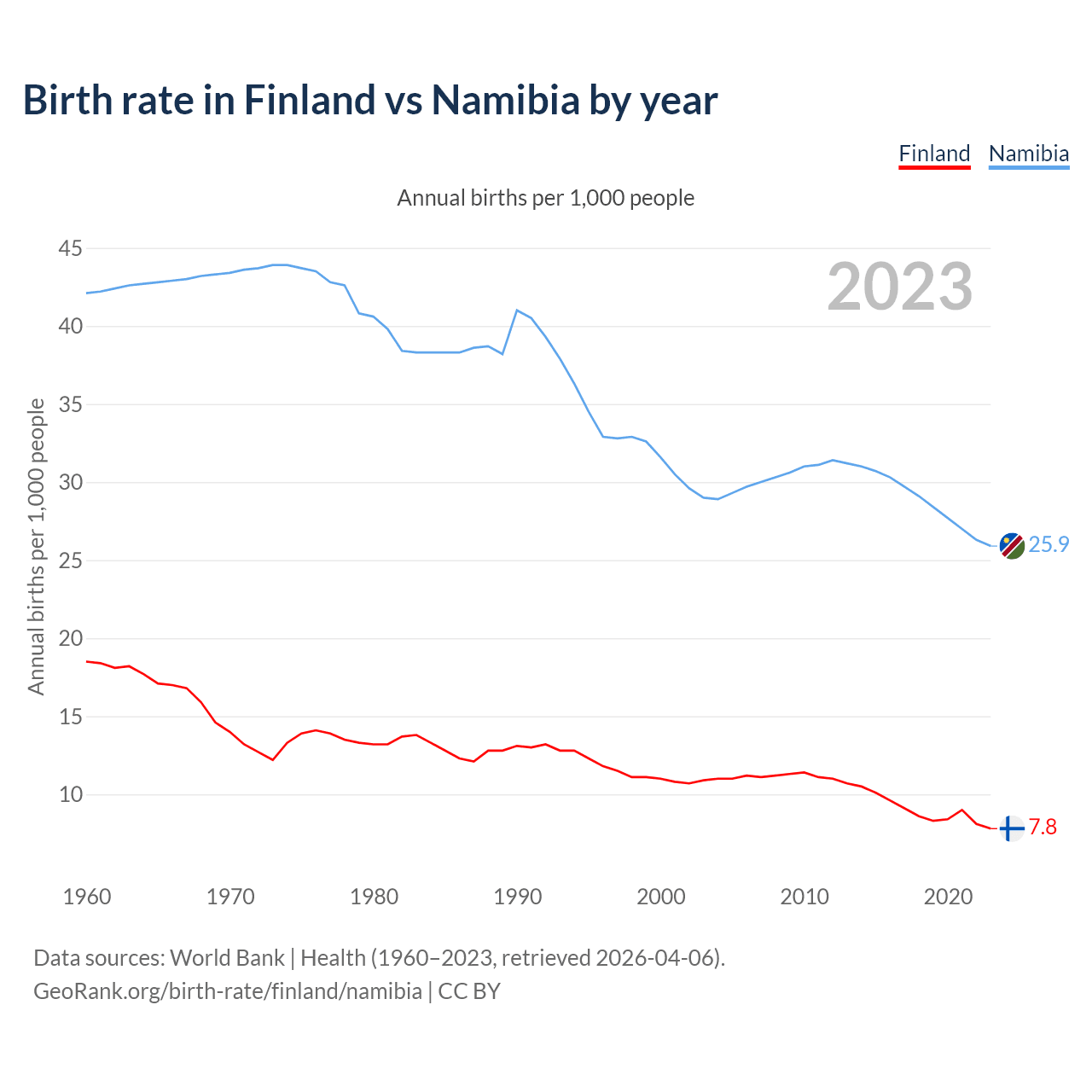 GeoRank.org/birth-rate/finland/namibia | CC BY