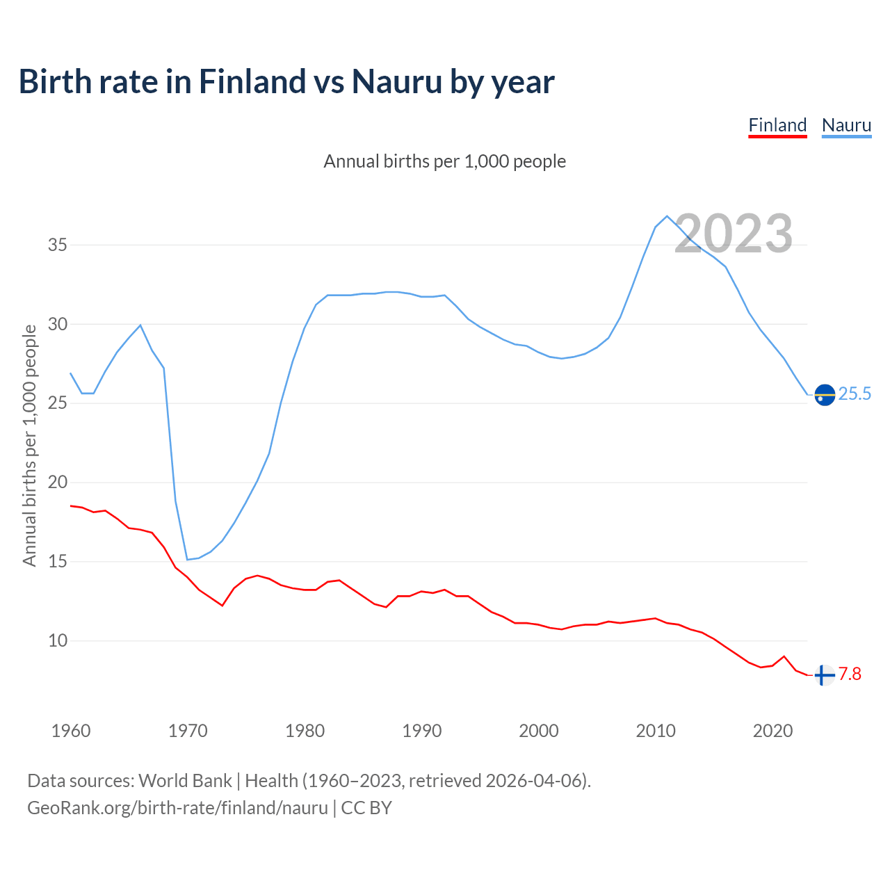 GeoRank.org/birth-rate/finland/nauru | CC BY