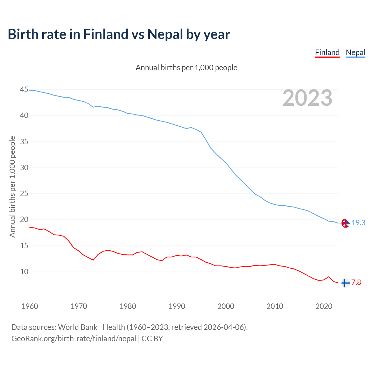 GeoRank.org/birth-rate/finland/nepal | CC BY