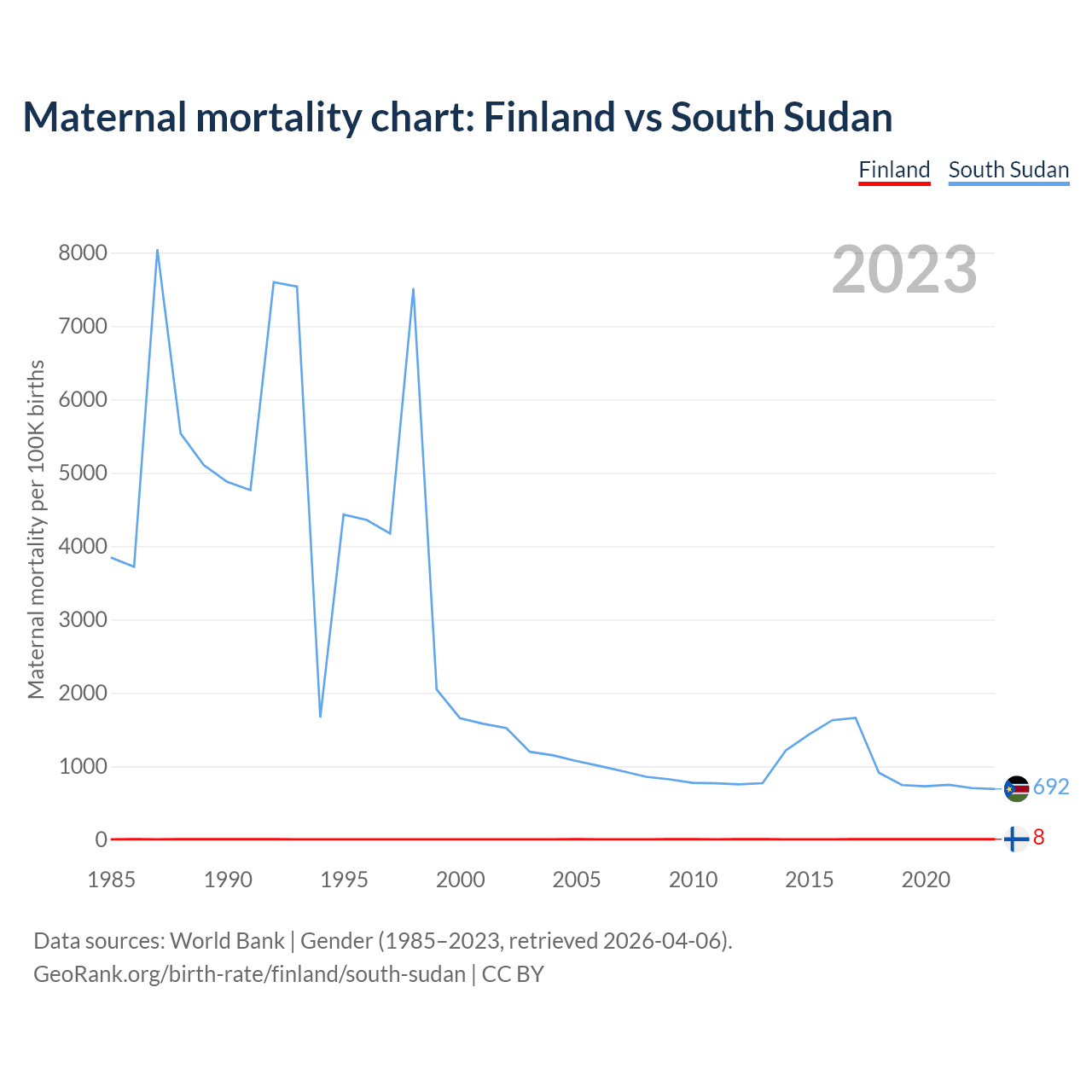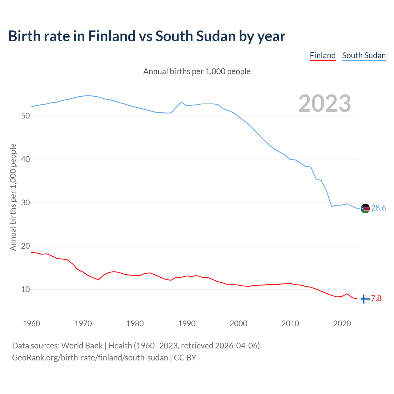 GeoRank.org/birth-rate/finland/south-sudan | CC BY