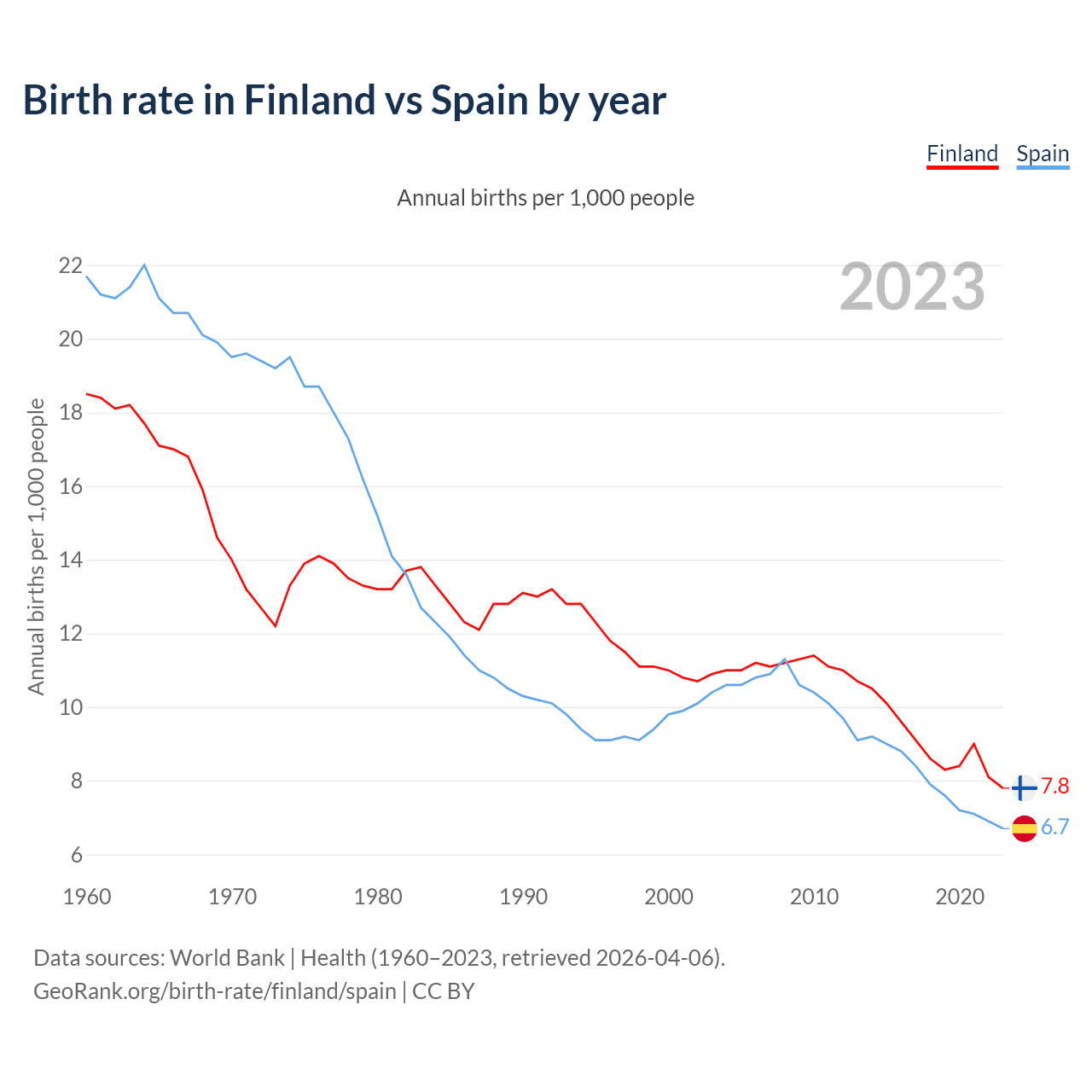 GeoRank.org/birth-rate/finland/spain | CC BY