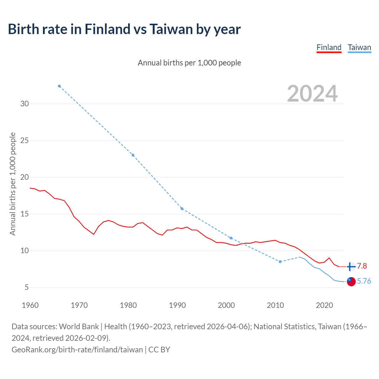 GeoRank.org/birth-rate/finland/taiwan | CC BY