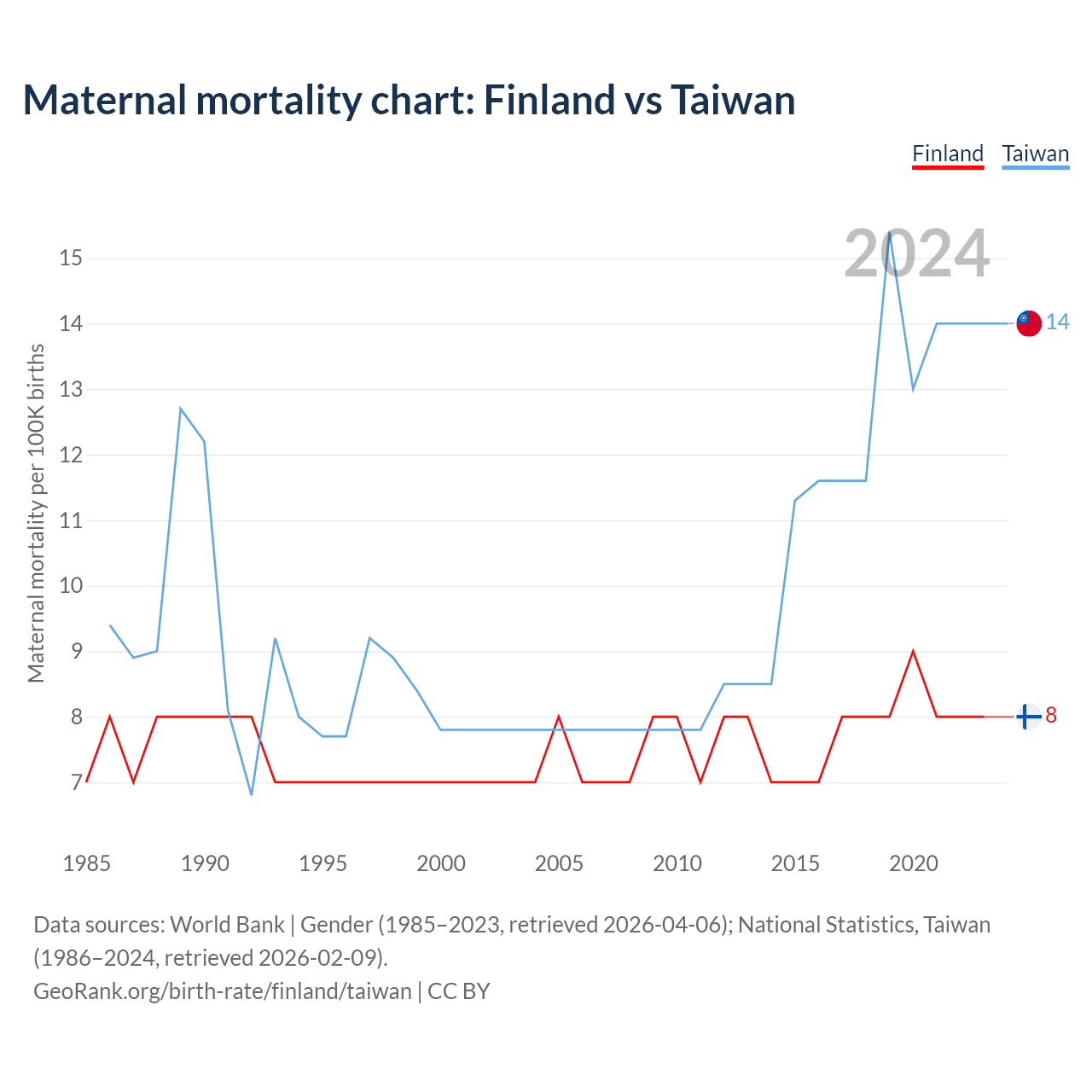 Maternal mortality chart: Finland vs Taiwan