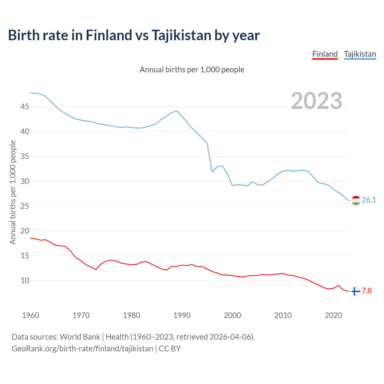 GeoRank.org/birth-rate/finland/tajikistan | CC BY
