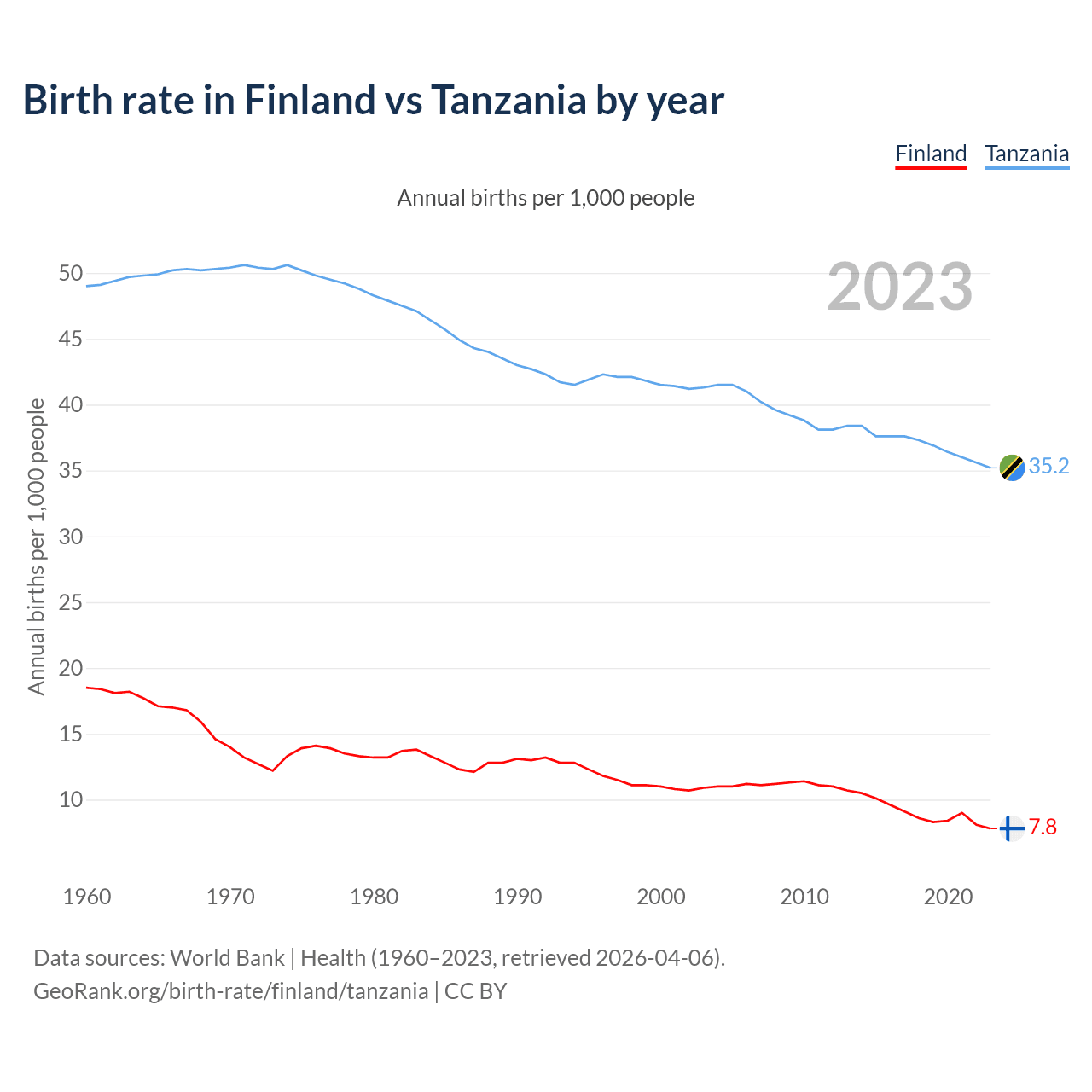GeoRank.org/birth-rate/finland/tanzania | CC BY