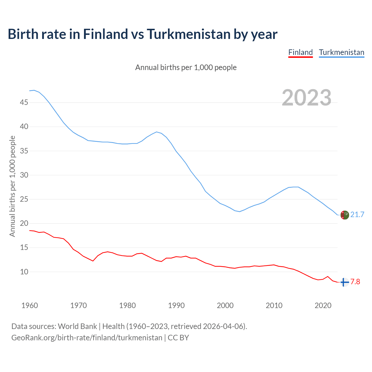 GeoRank.org/birth-rate/finland/turkmenistan | CC BY