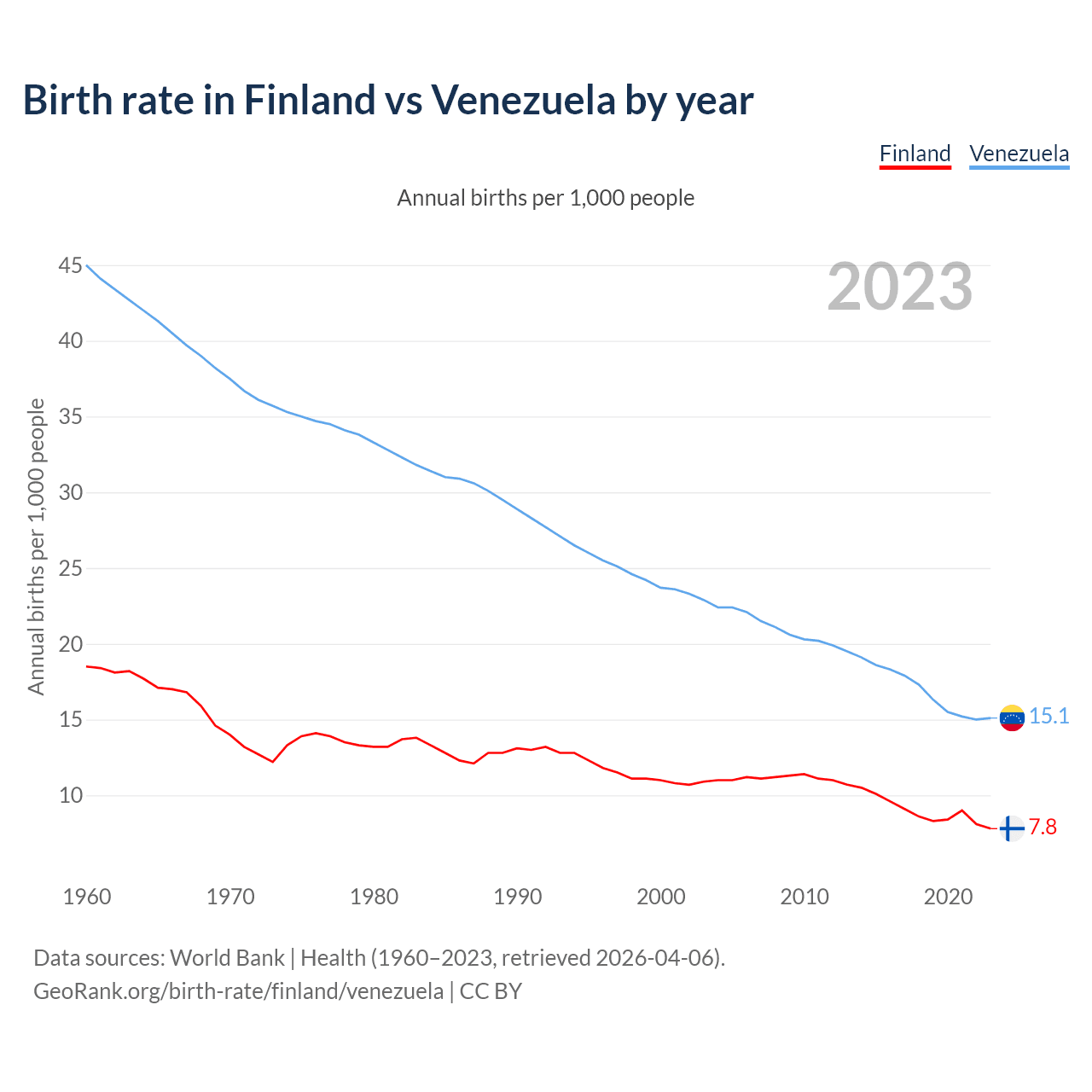 GeoRank.org/birth-rate/finland/venezuela | CC BY