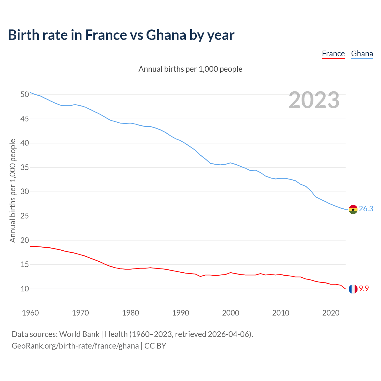 GeoRank.org/birth-rate/france/ghana | CC BY
