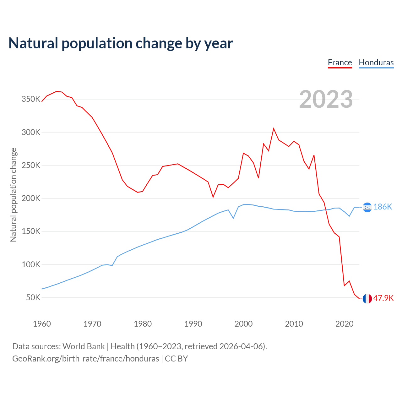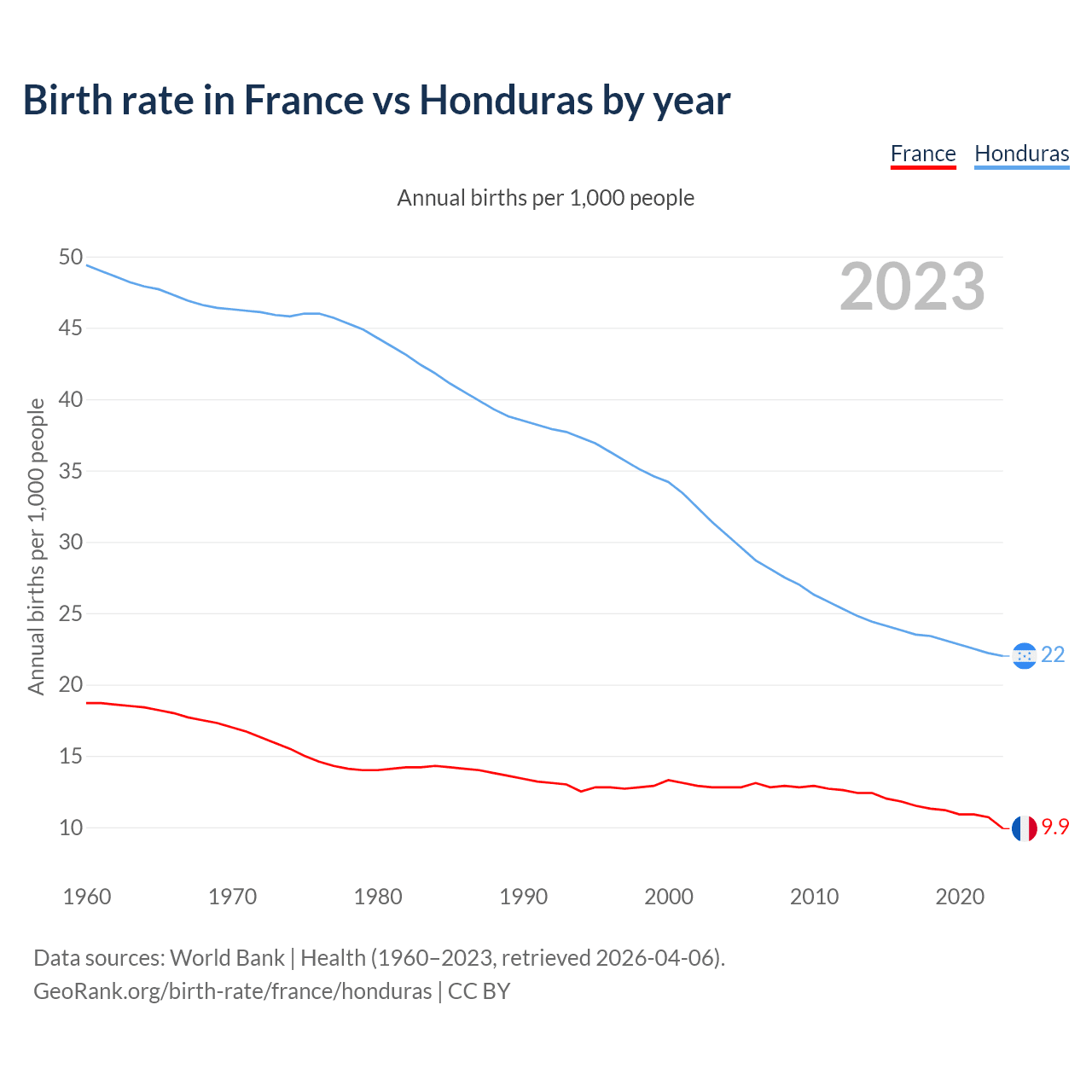 GeoRank.org/birth-rate/france/honduras | CC BY