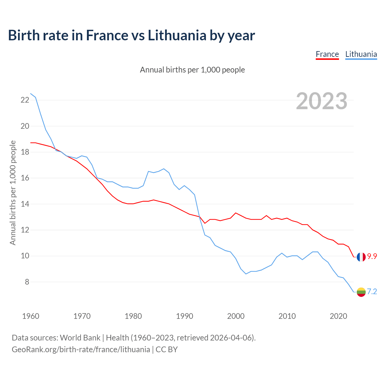 GeoRank.org/birth-rate/france/lithuania | CC BY