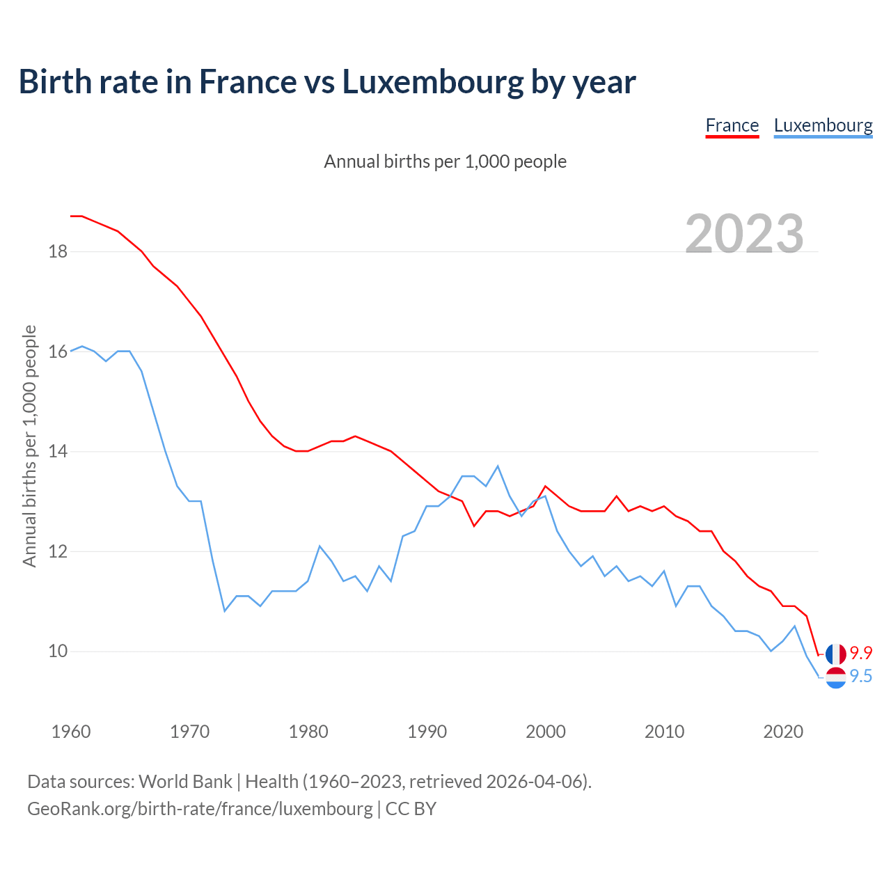 GeoRank.org/birth-rate/france/luxembourg | CC BY