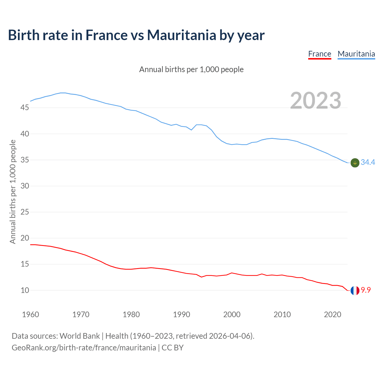 GeoRank.org/birth-rate/france/mauritania | CC BY