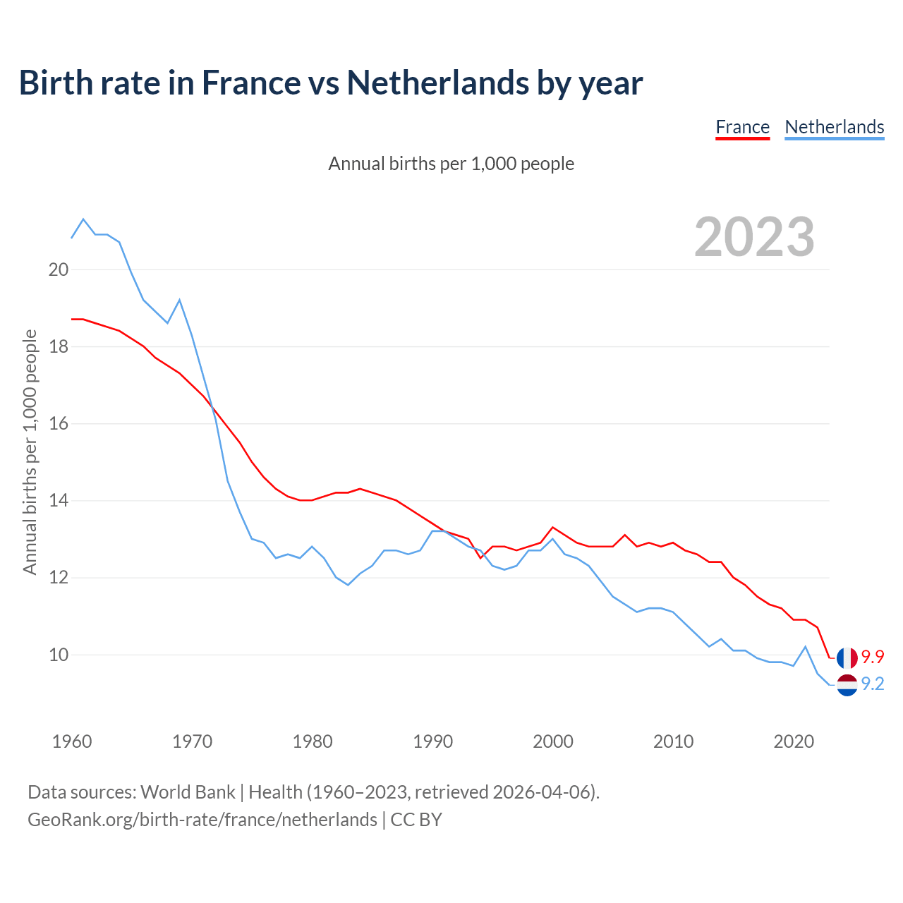 GeoRank.org/birth-rate/france/netherlands | CC BY