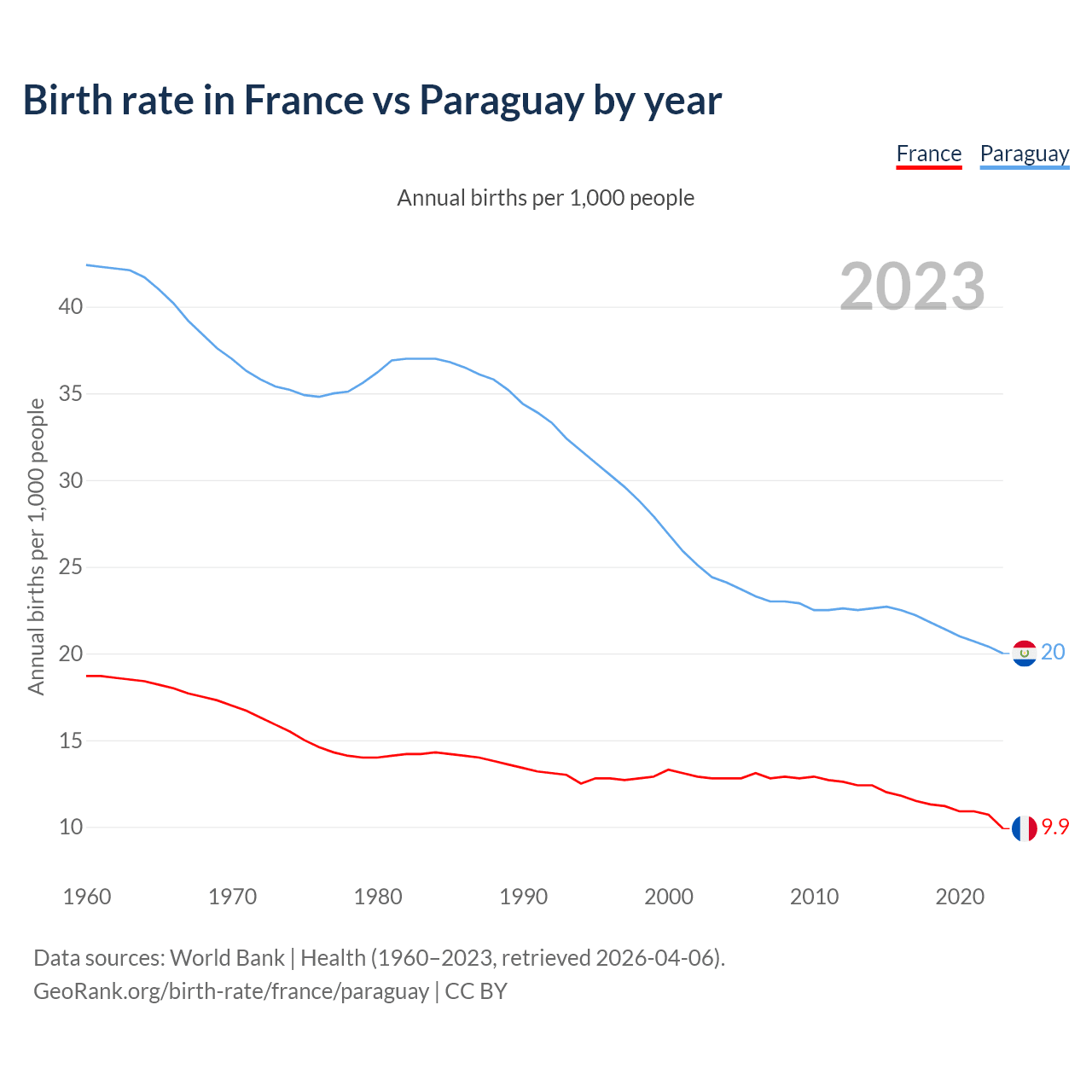 GeoRank.org/birth-rate/france/paraguay | CC BY