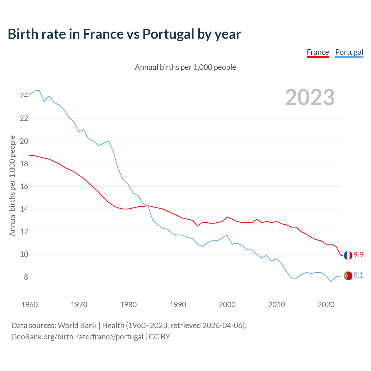 GeoRank.org/birth-rate/france/portugal | CC BY