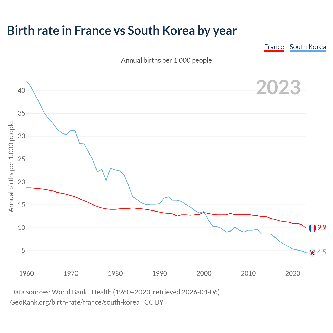 GeoRank.org/birth-rate/france/south-korea | CC BY