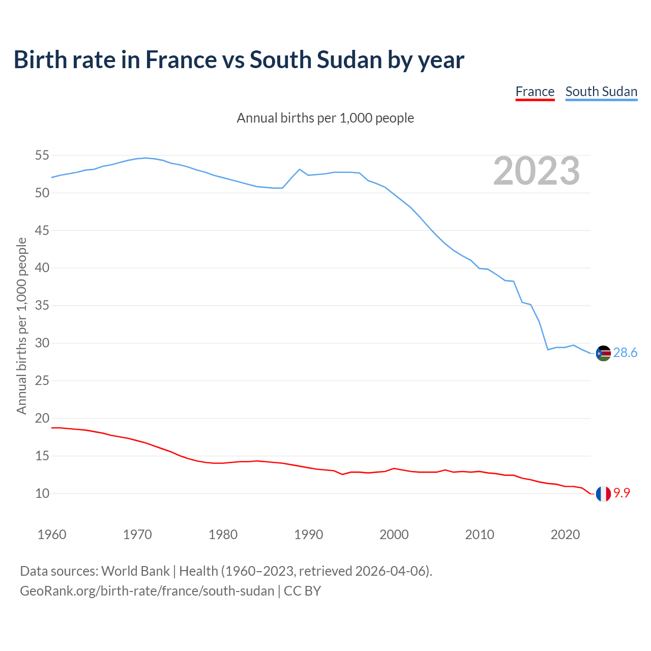 GeoRank.org/birth-rate/france/south-sudan | CC BY