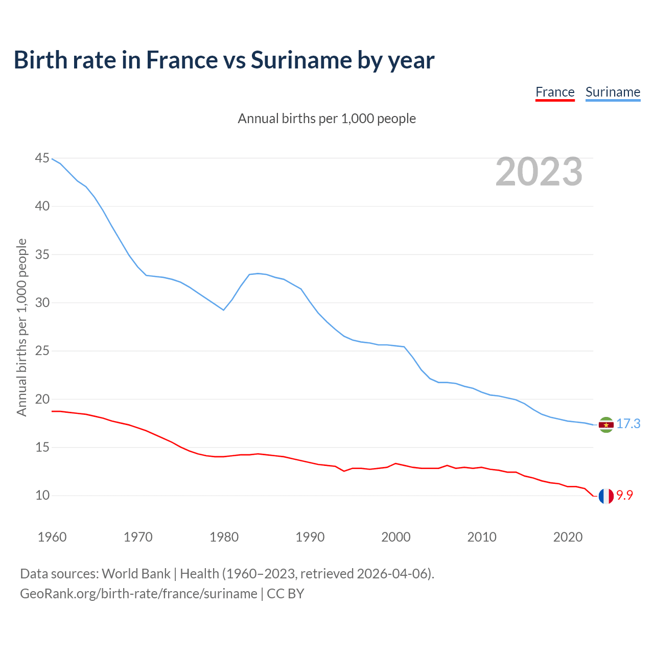 GeoRank.org/birth-rate/france/suriname | CC BY