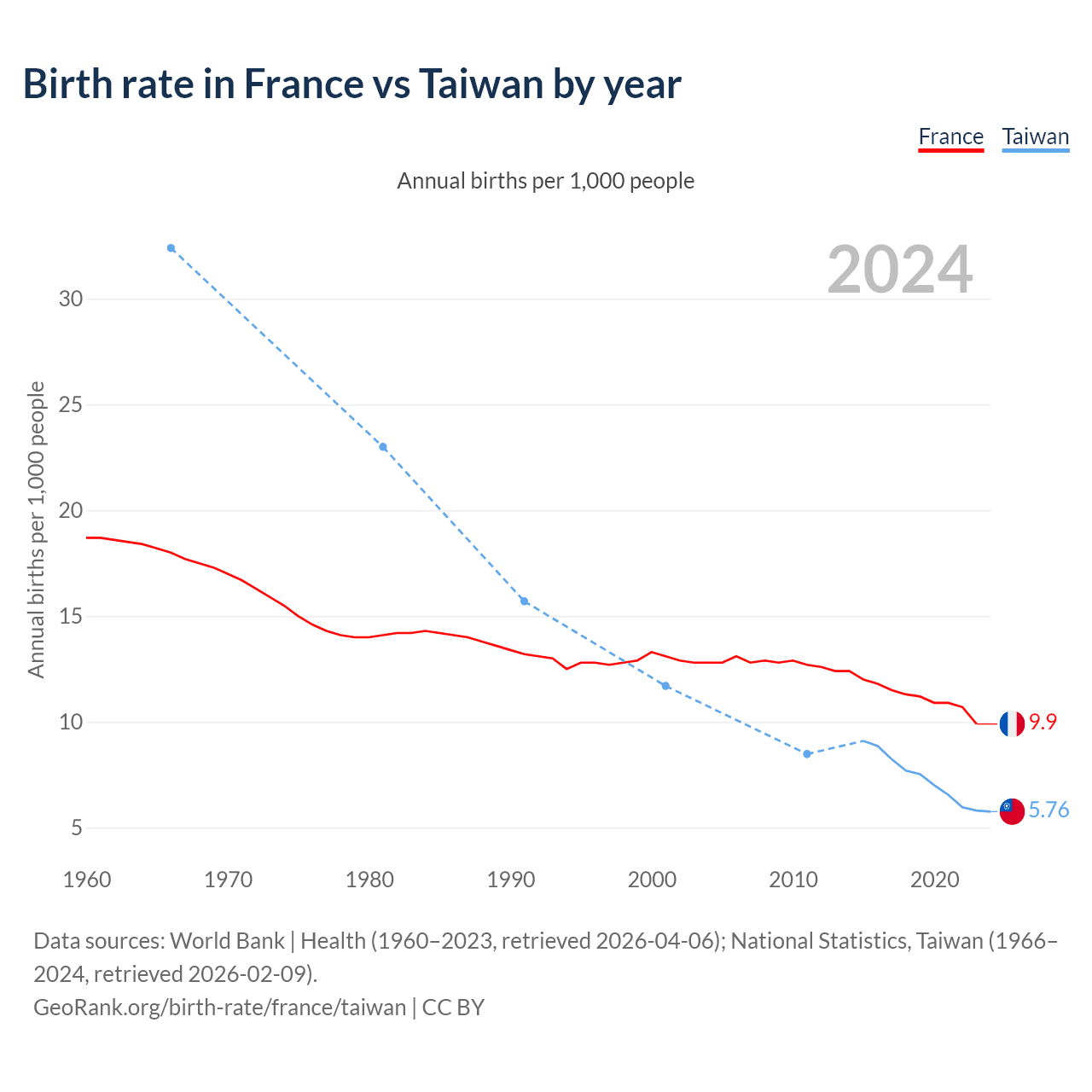 GeoRank.org/birth-rate/france/taiwan | CC BY