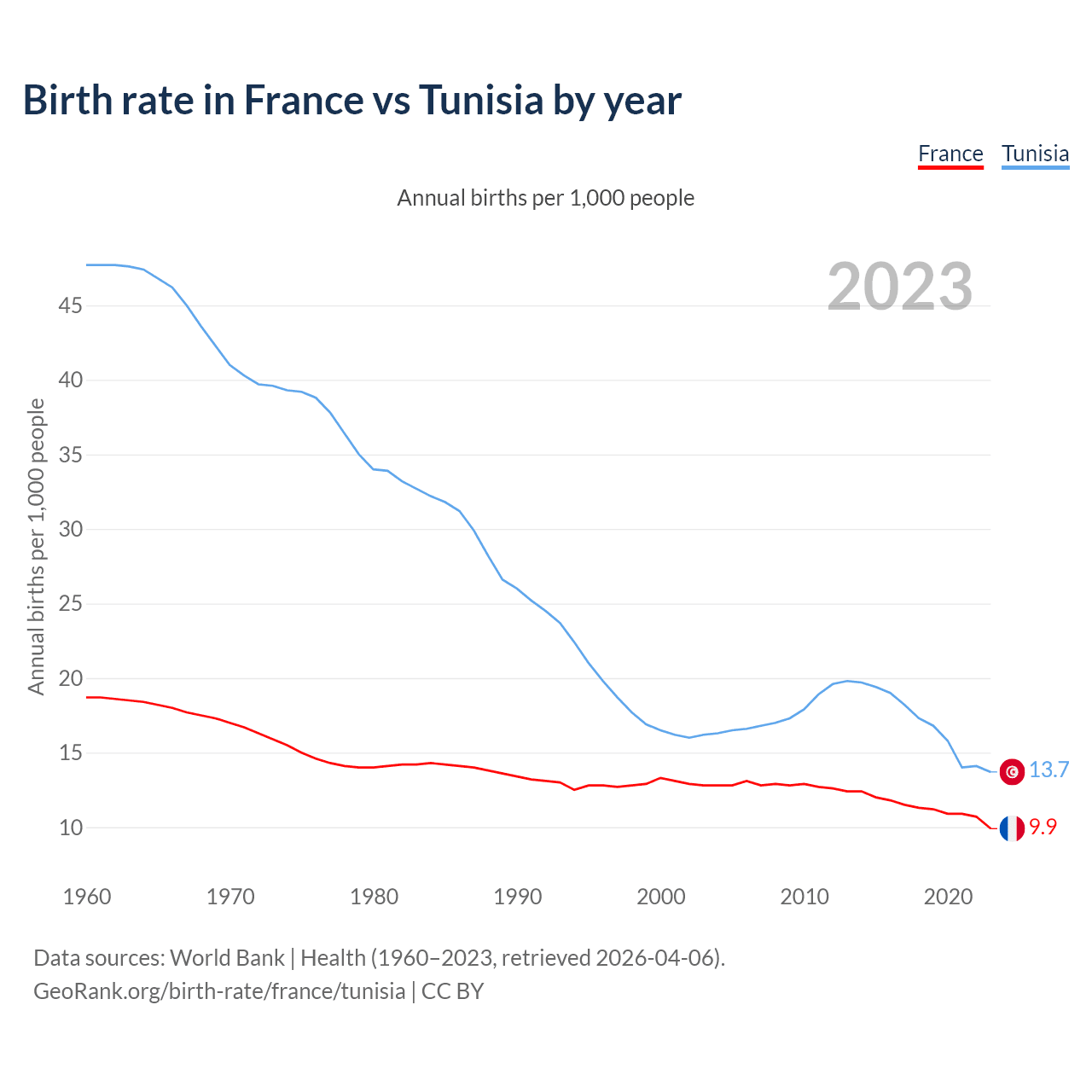 GeoRank.org/birth-rate/france/tunisia | CC BY