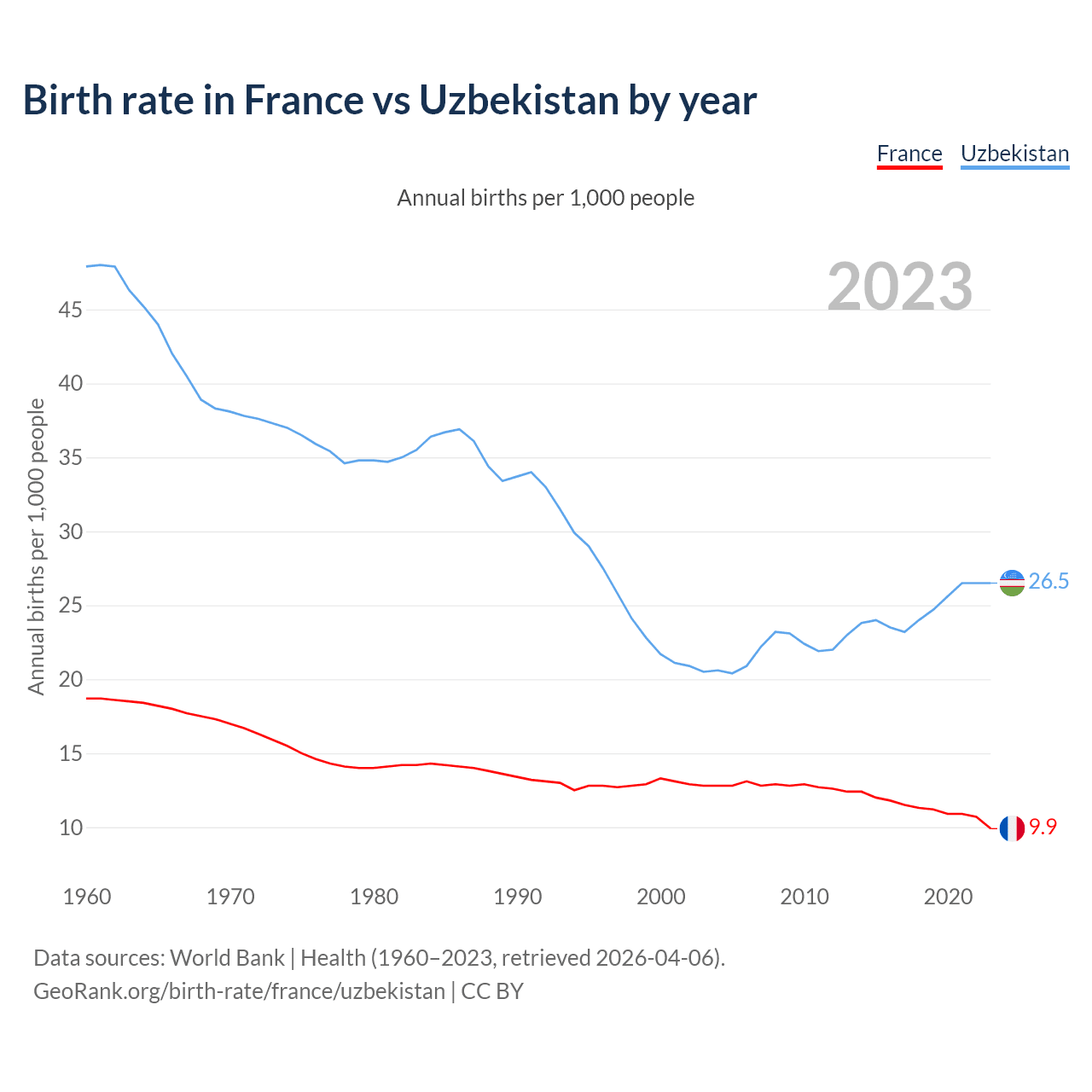 GeoRank.org/birth-rate/france/uzbekistan | CC BY