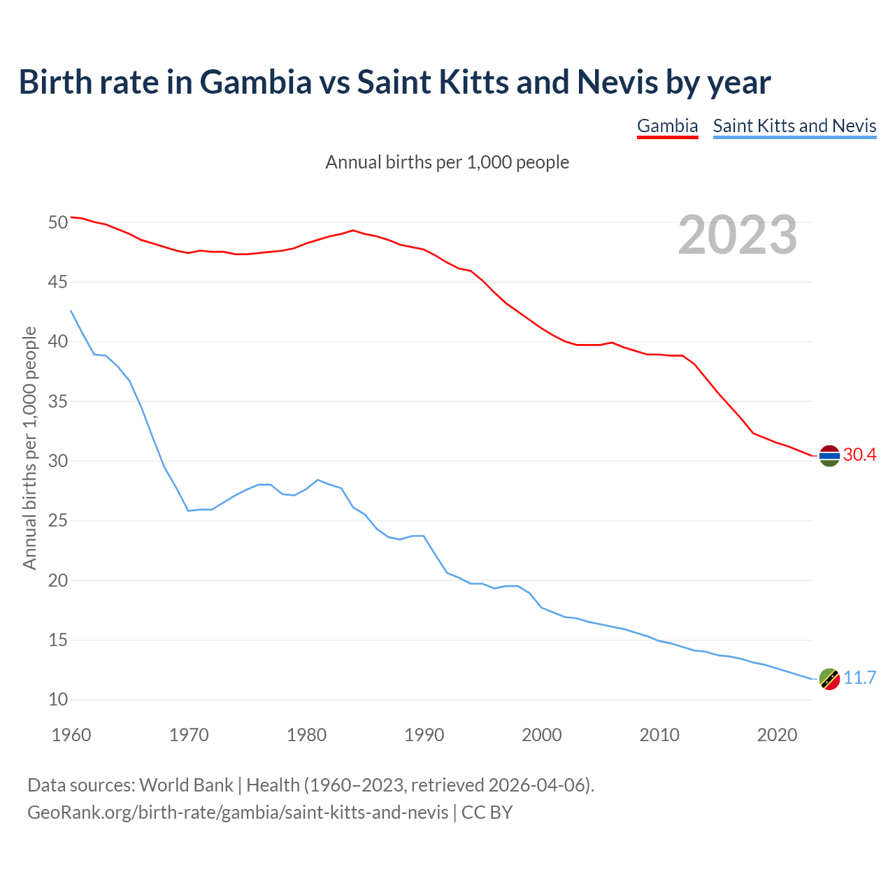 GeoRank.org/birth-rate/gambia/saint-kitts-and-nevis | CC BY