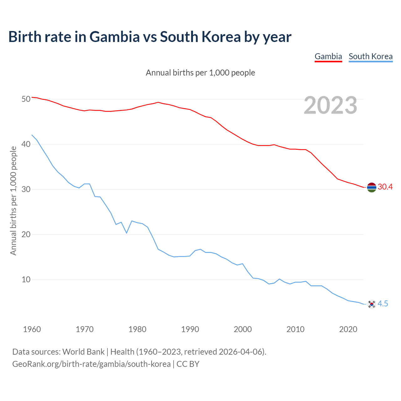 GeoRank.org/birth-rate/gambia/south-korea | CC BY